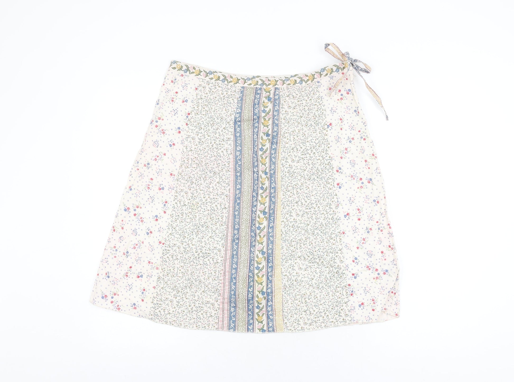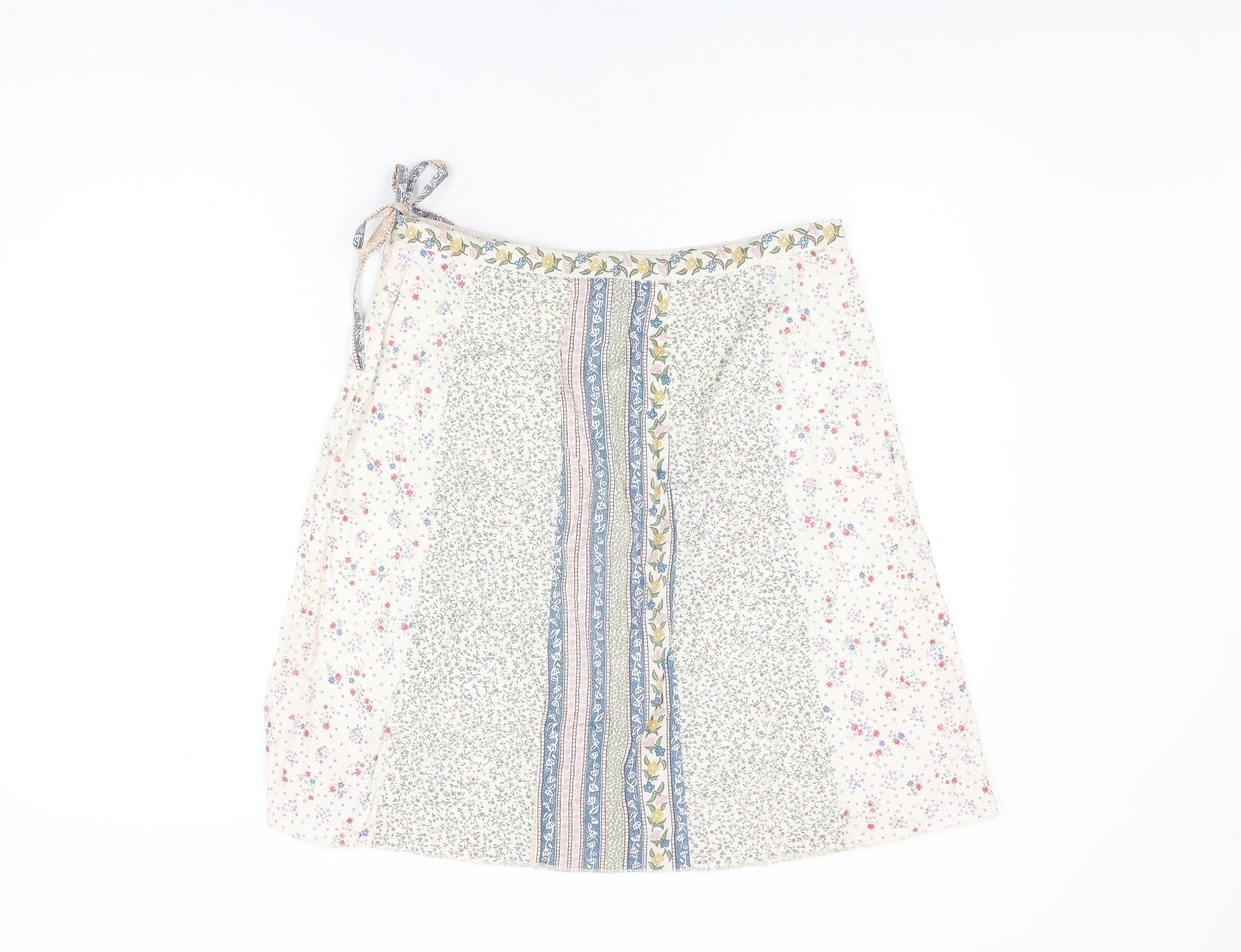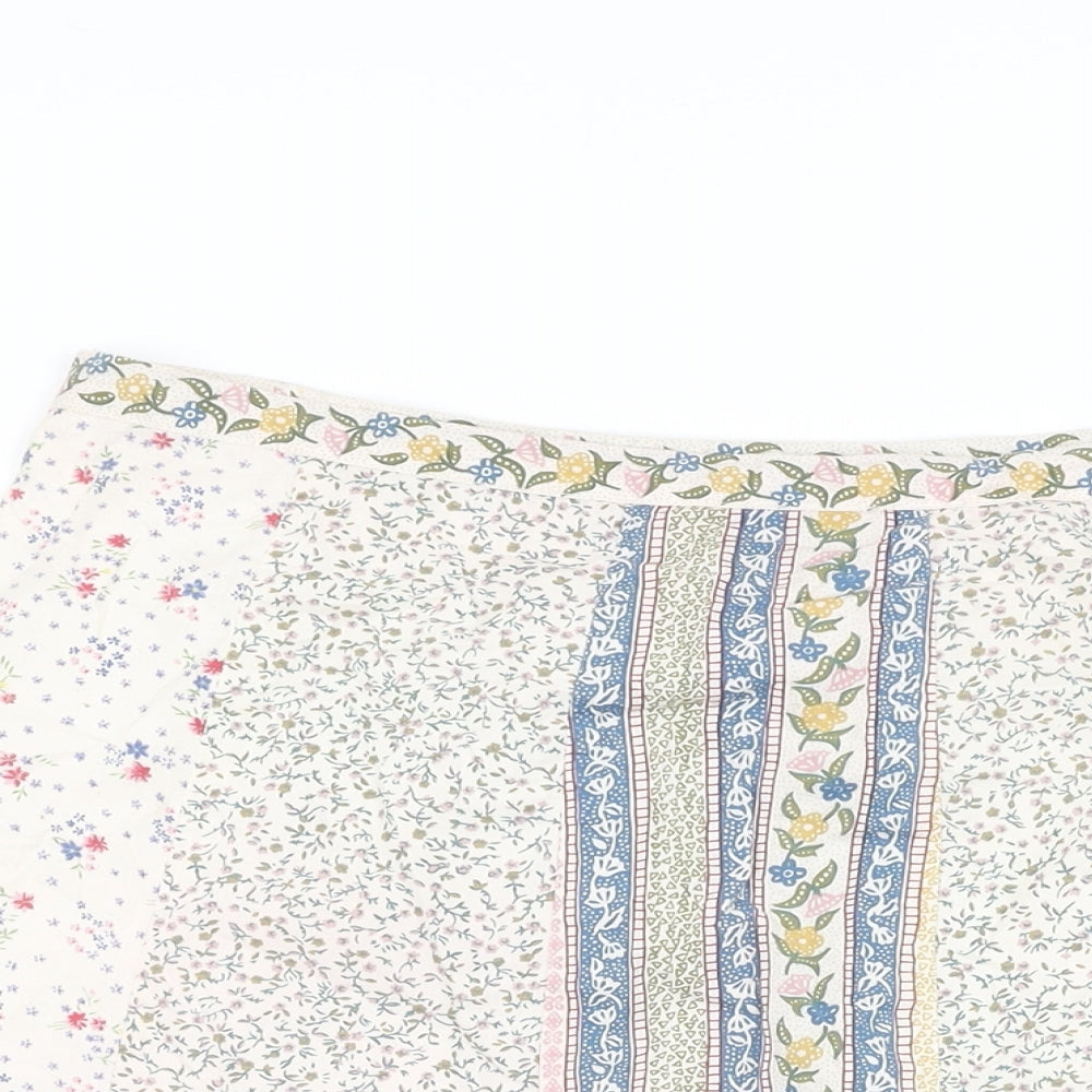 H&M Womens White Floral Cotton Swing Skirt Size 12 Zip