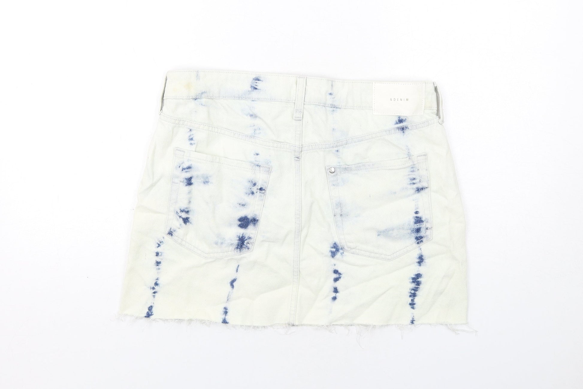 H&M Womens White Geometric Cotton A-Line Skirt Size S Zip - Tie Dye Pattern