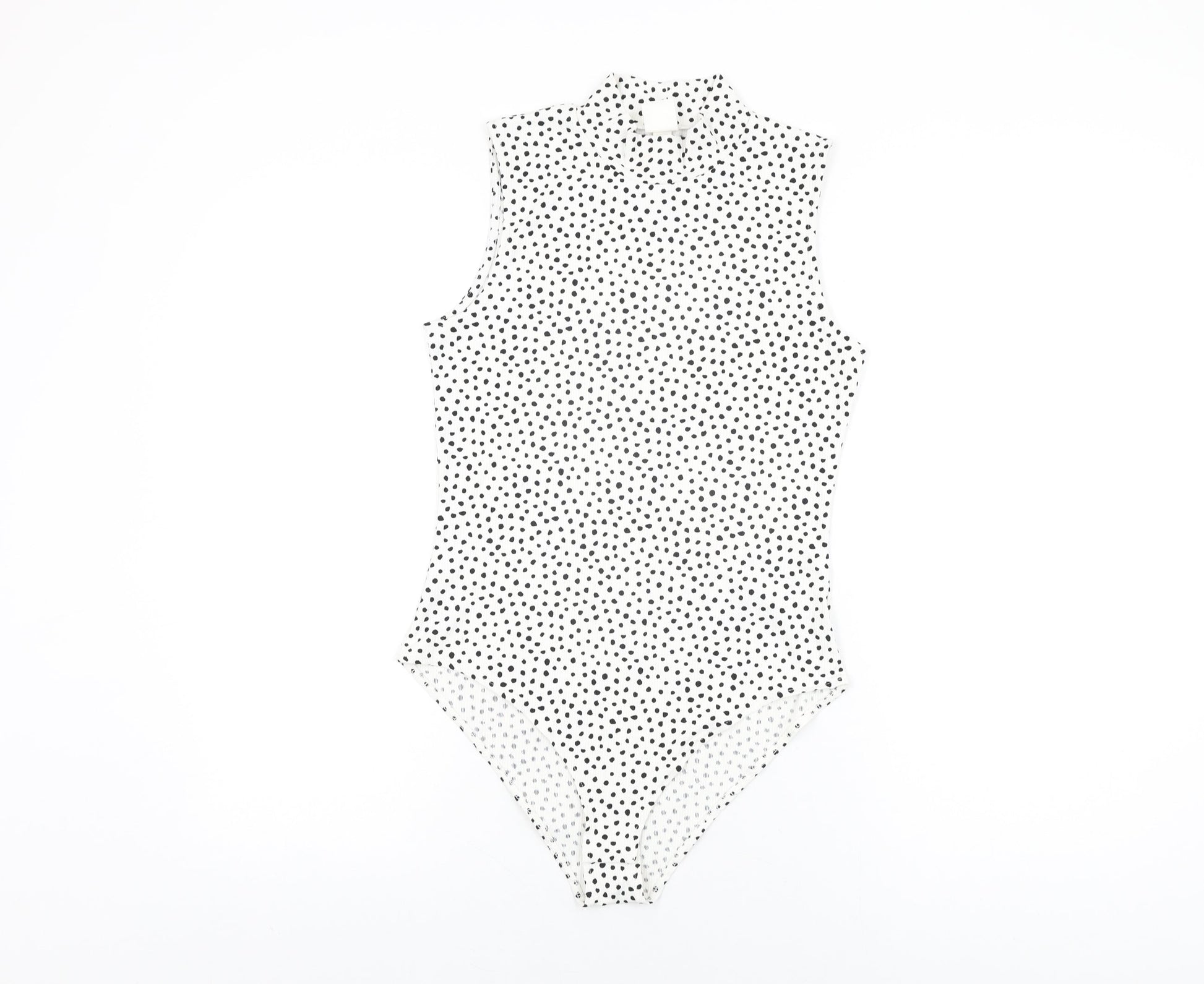 H&M Womens White Polka Dot Polyester Bodysuit One-Piece Size M Snap
