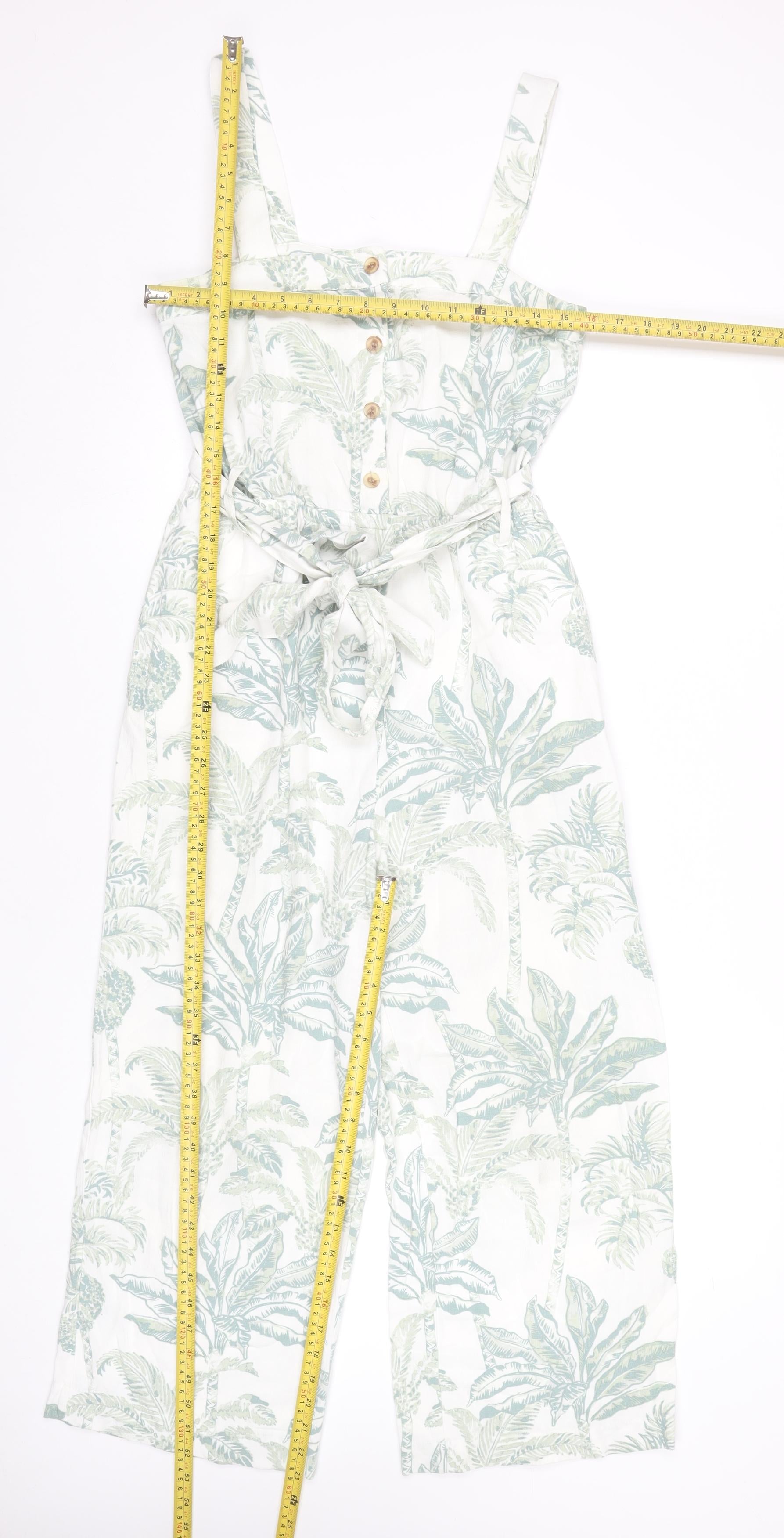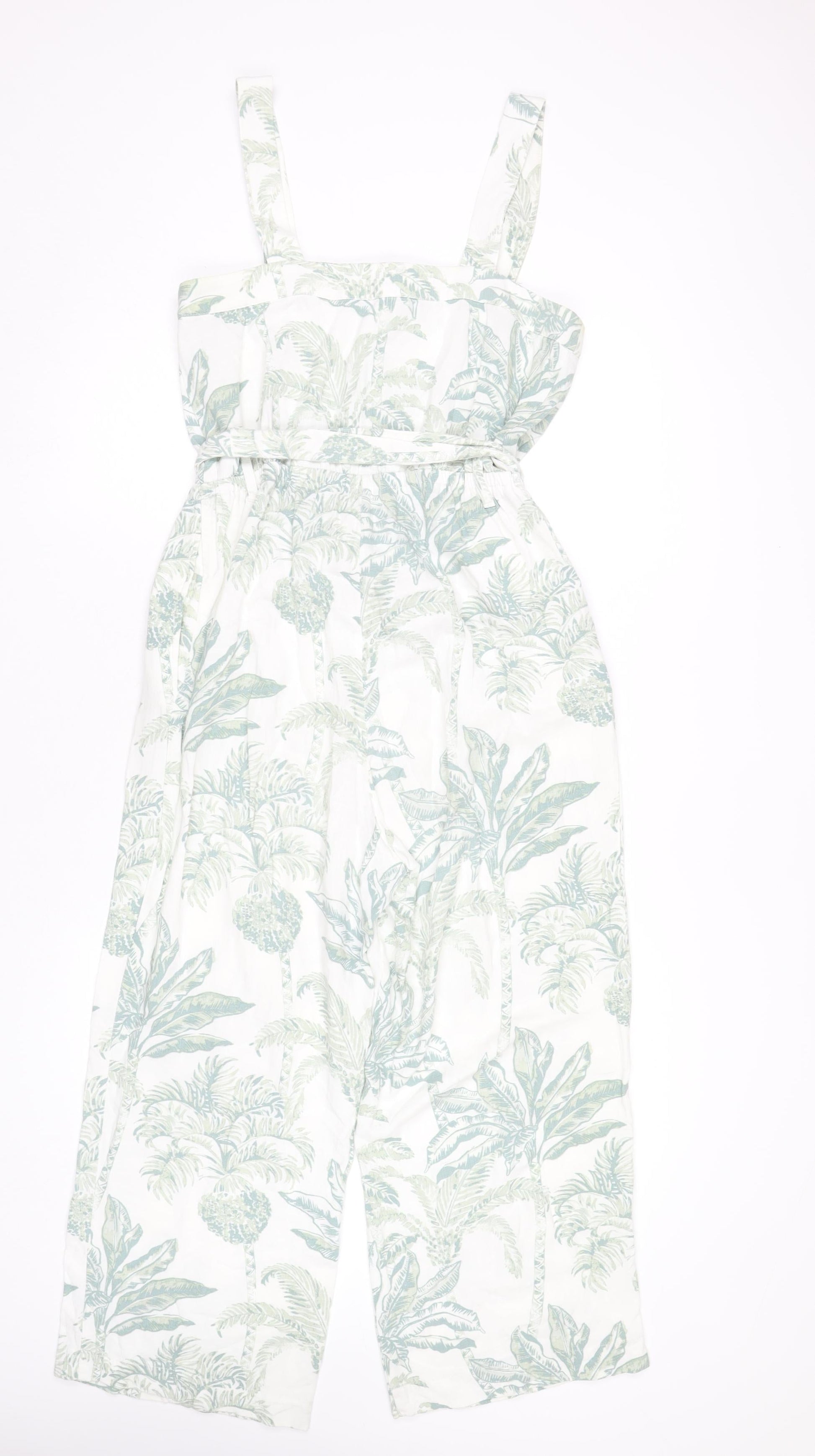 H&M Womens White Tropical Wide Leg Sleeveless Jumpsuit Size S
