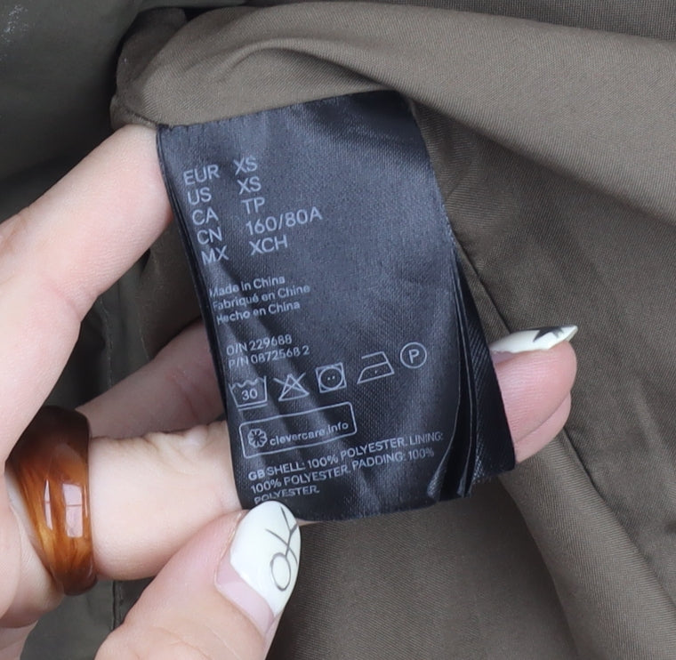 H&M Women's XS Green Puffer Jacket Hooded Casual Winter