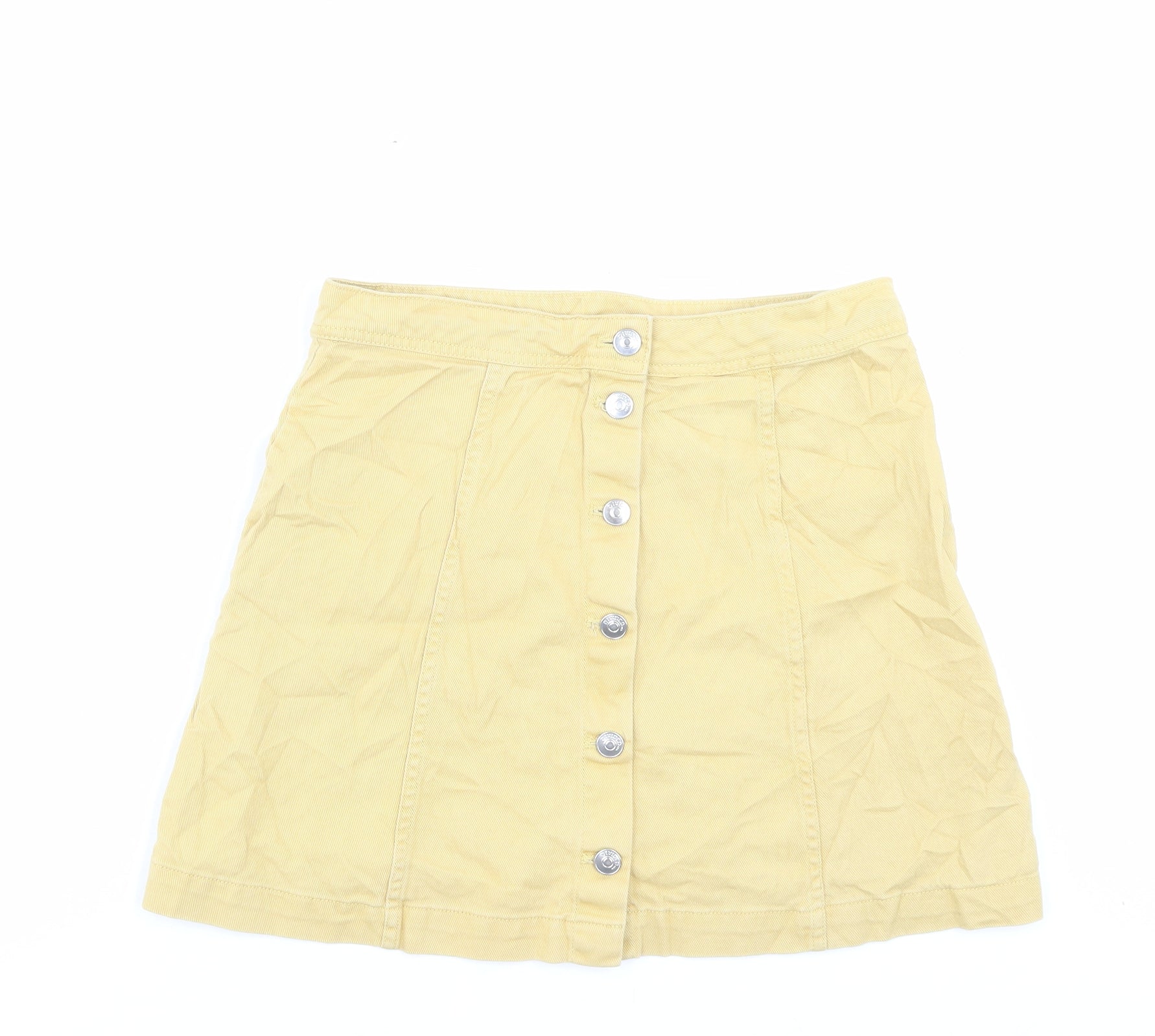 H&M Womens Yellow Cotton A-Line Skirt Size 10 Button