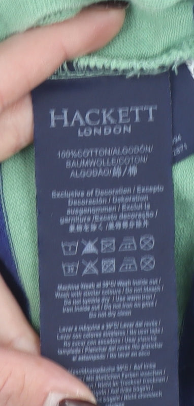 Hackett London Men's Green Striped Slim Fit Polo Shirt Size S