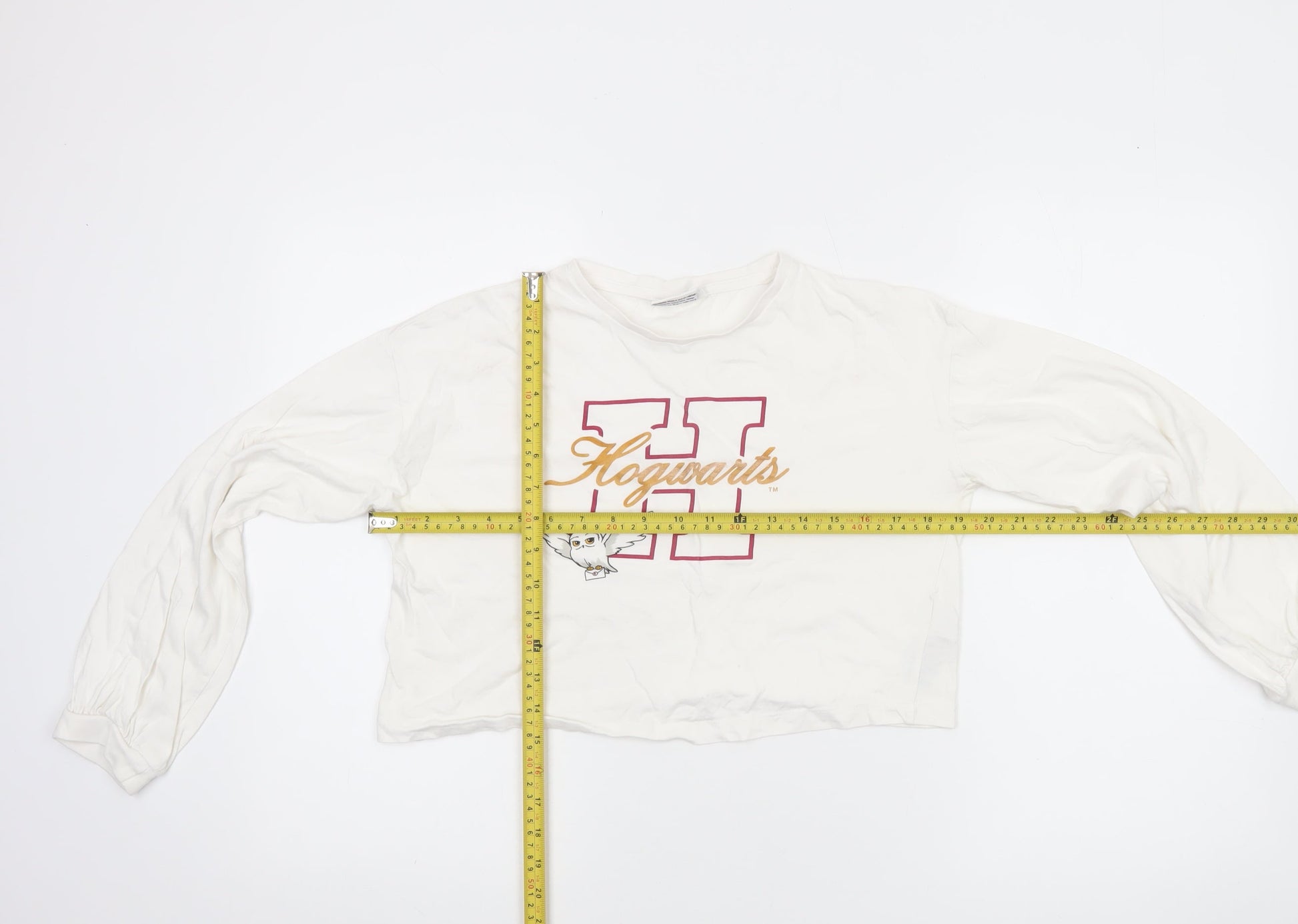 Harry Potter Girls White Cropped Long Sleeve Hogwarts T-Shirt Size 146
