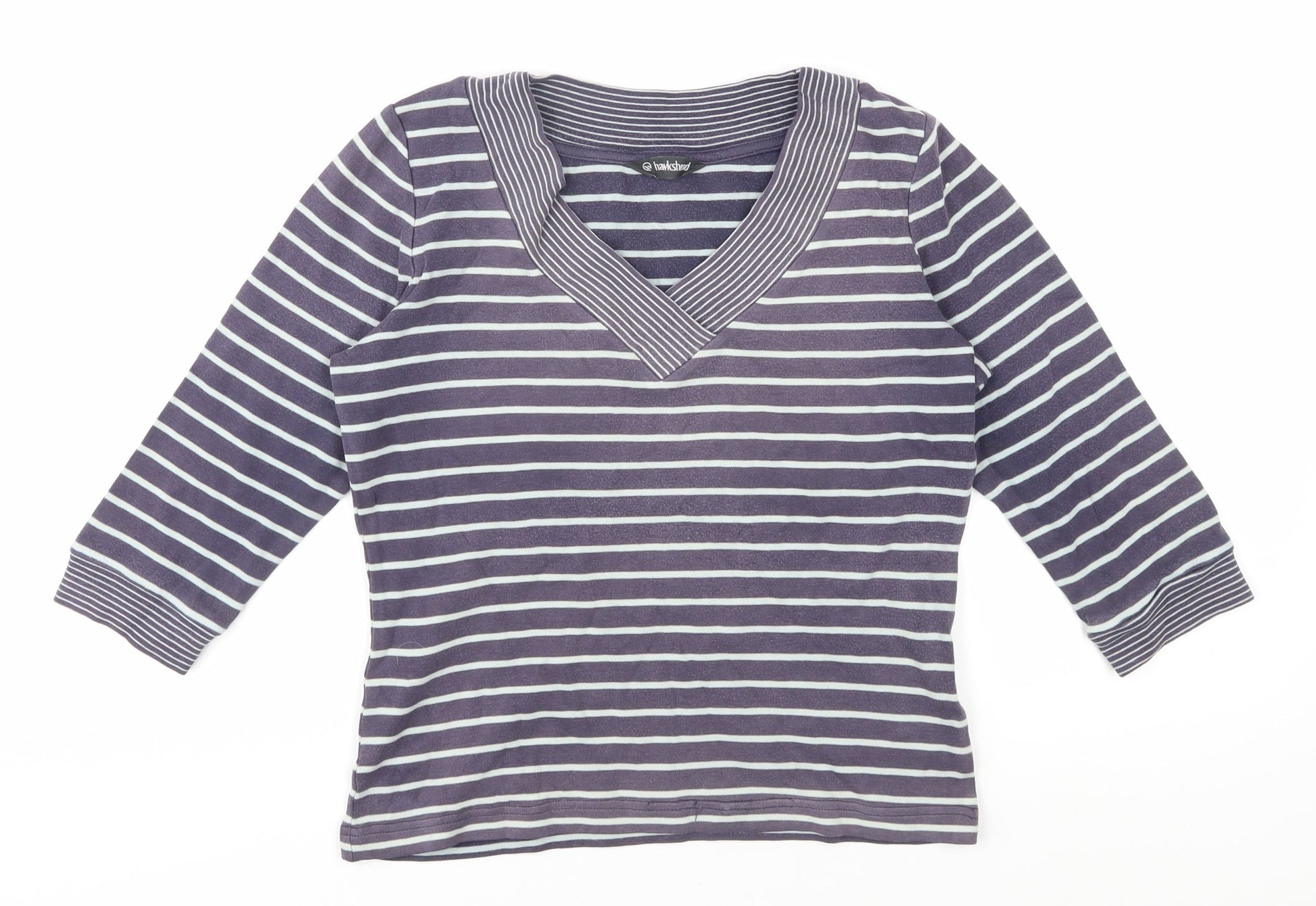 Hawkshead Women's Blue Striped V-Neck T-Shirt Size 12