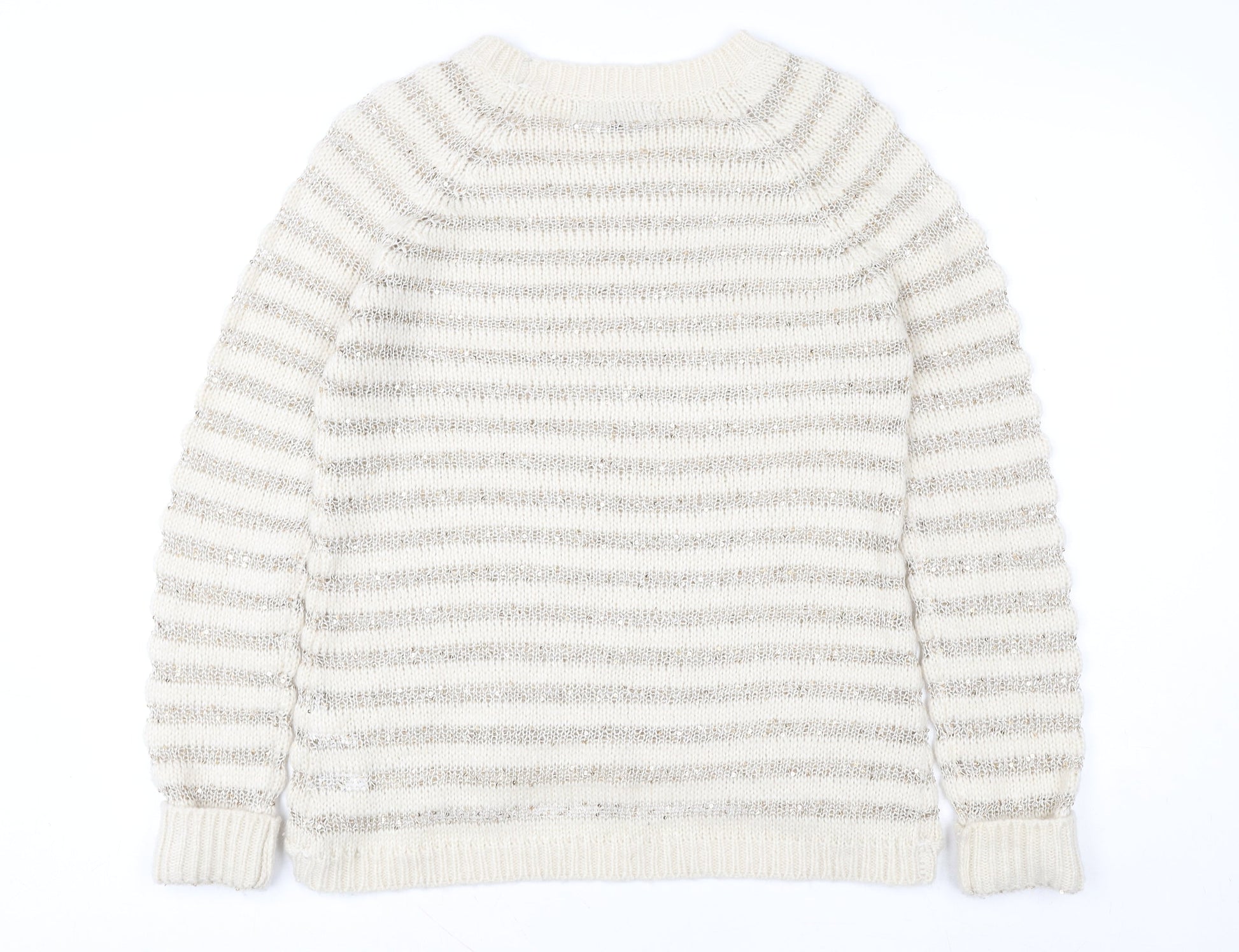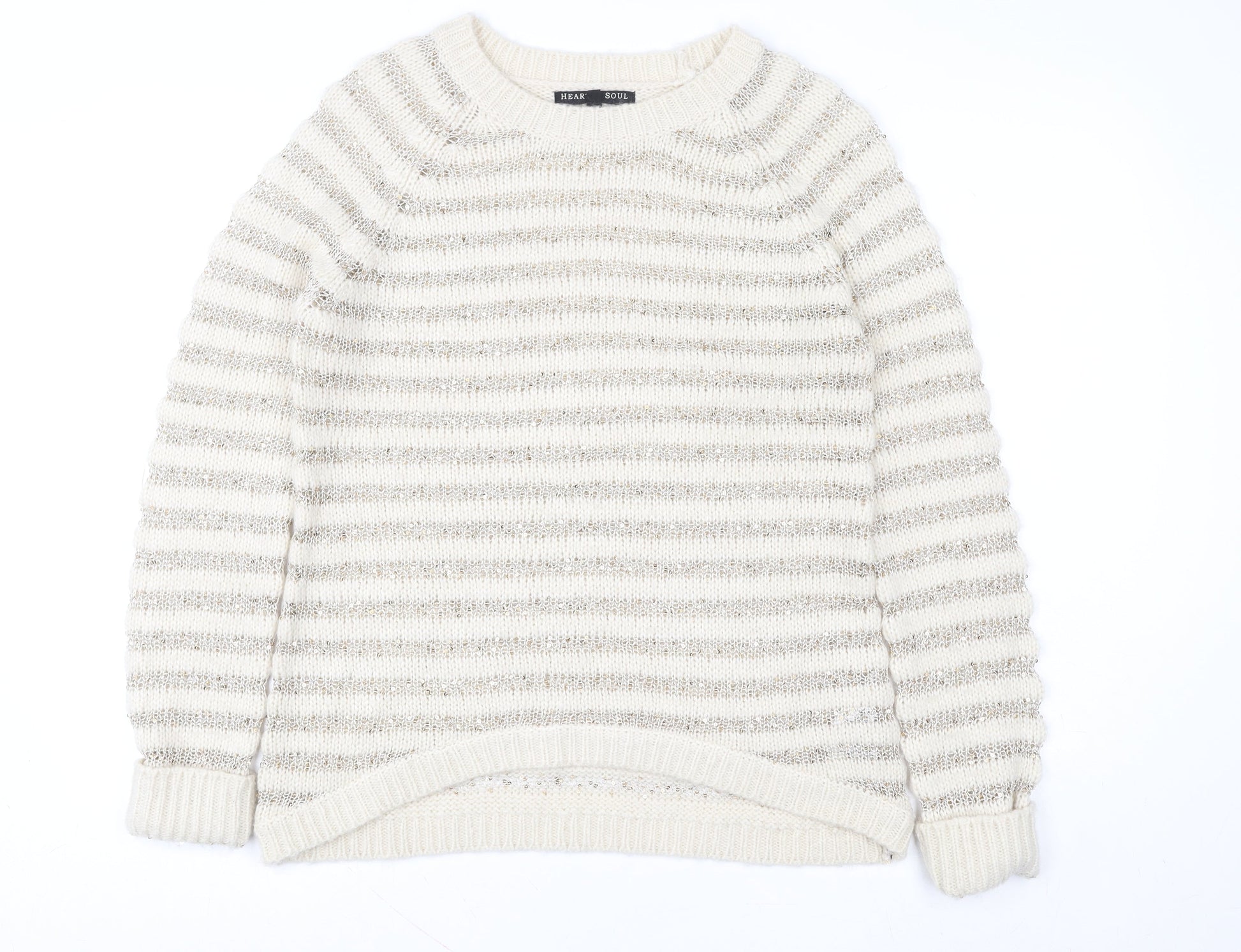 Heart & Soul Women’s Beige Striped Knit Jumper Size 12 Crew Neck