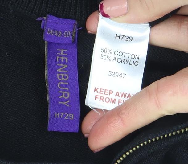 Henbury Men’s Black 1/4 Zip High Neck Cotton Acrylic Jumper M