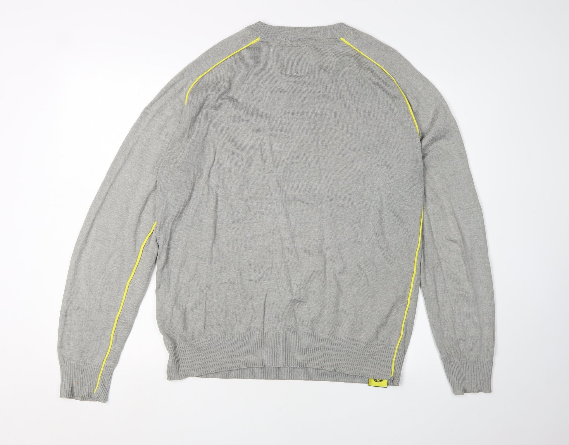 Henleys Men's Grey Pullover Jumper, Logo Accent, M