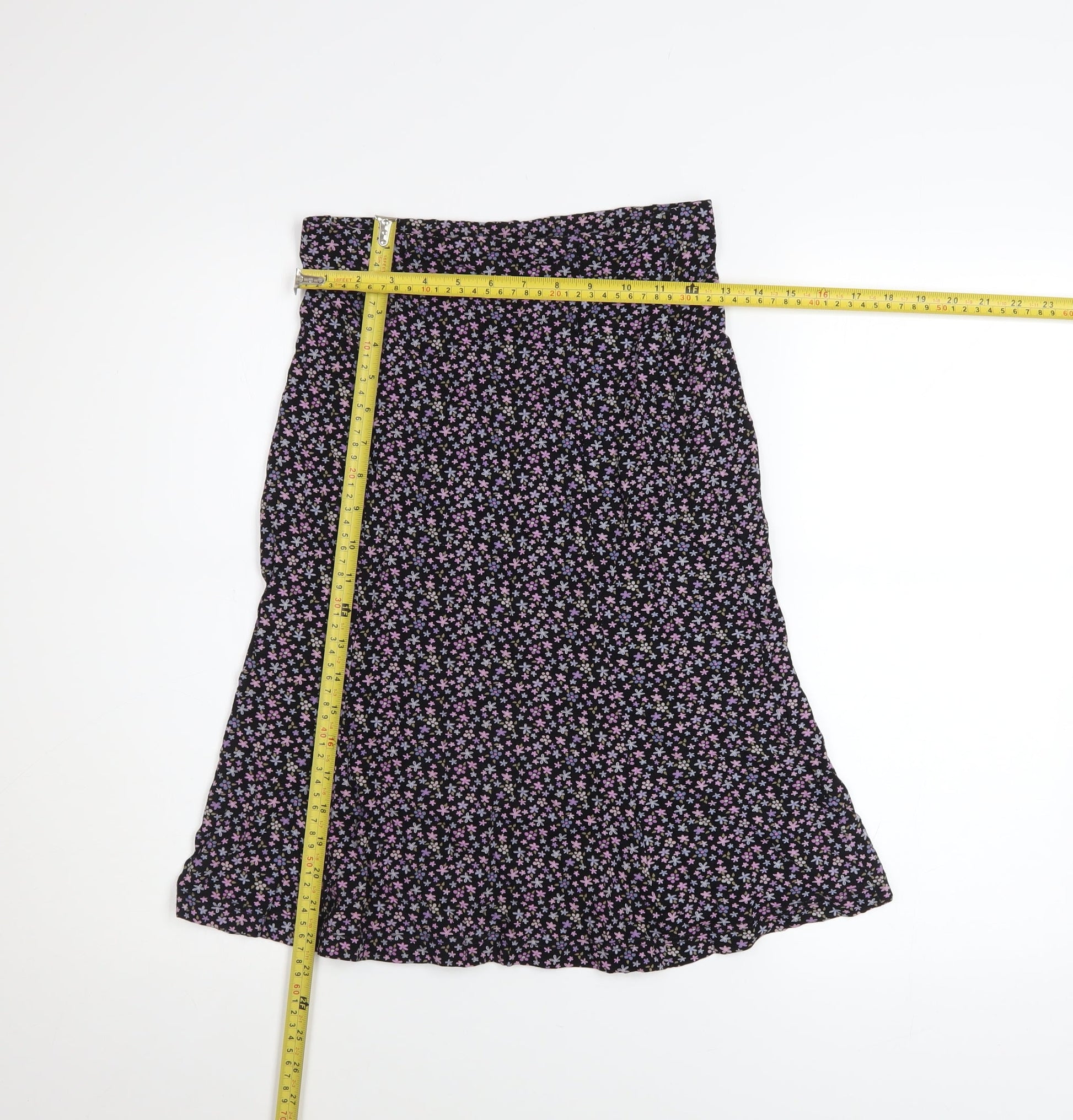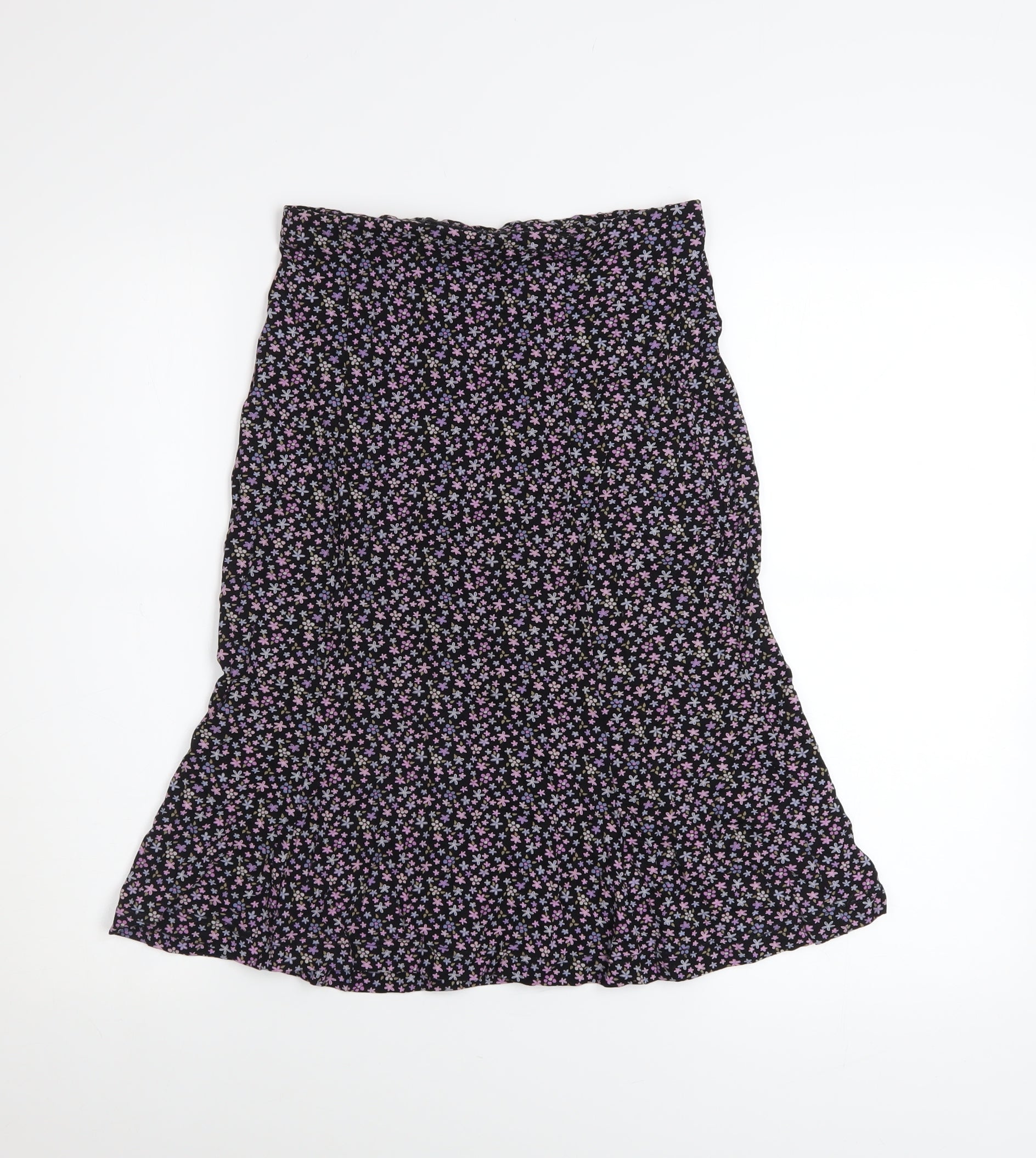Hennes Womens Black Floral A-Line Viscose Stretch Midi Skirt Size S