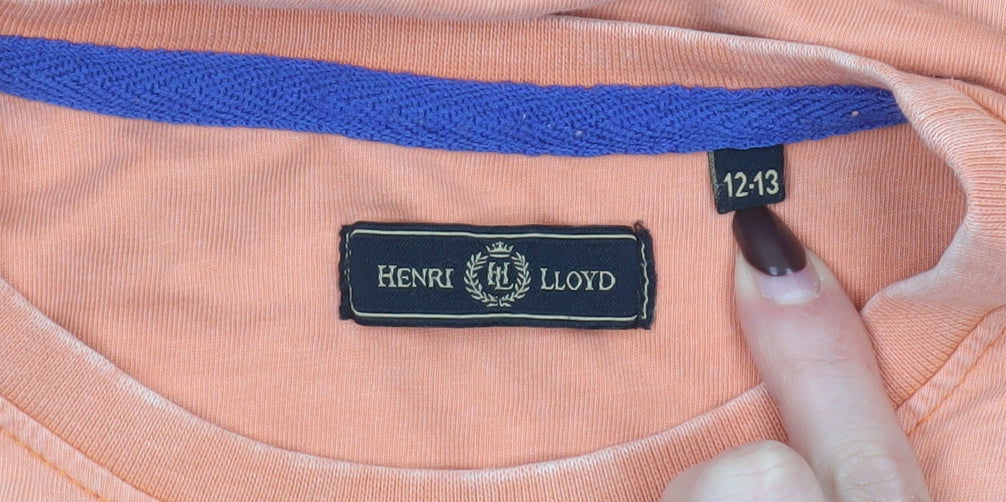 Henri Lloyd Boys Red Orange 12-13 Years Cotton Graphic T-Shirt