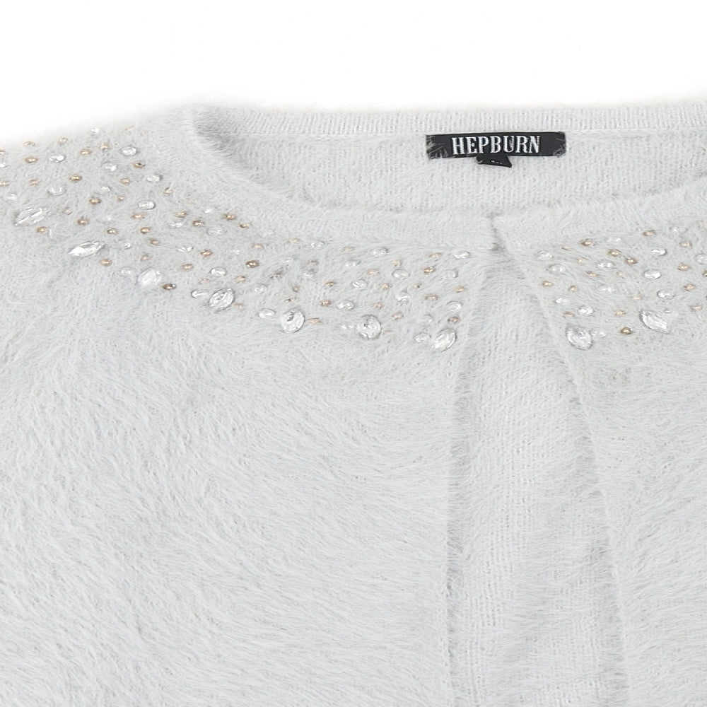 Hepburn Womens Grey Round Neck Polyamide Cardigan Jumper Size L