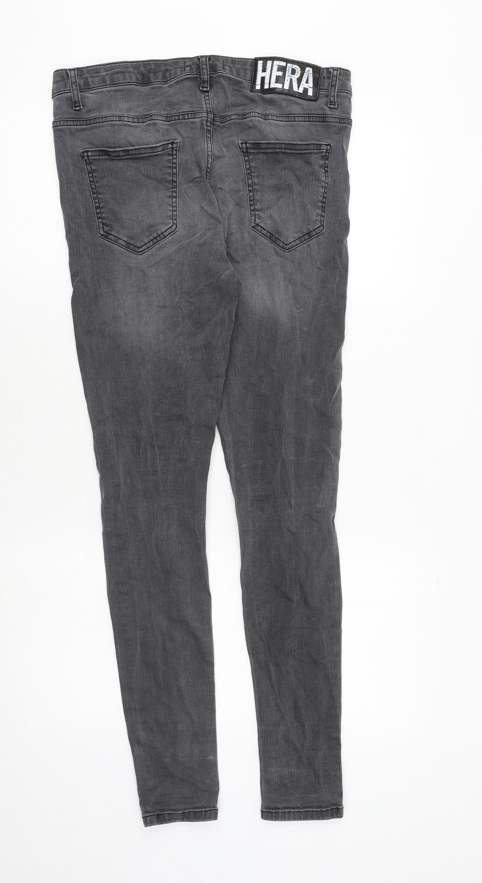 Hera Mens Grey Herringbone Cotton Skinny Jeans Size 28 in Slim Zip