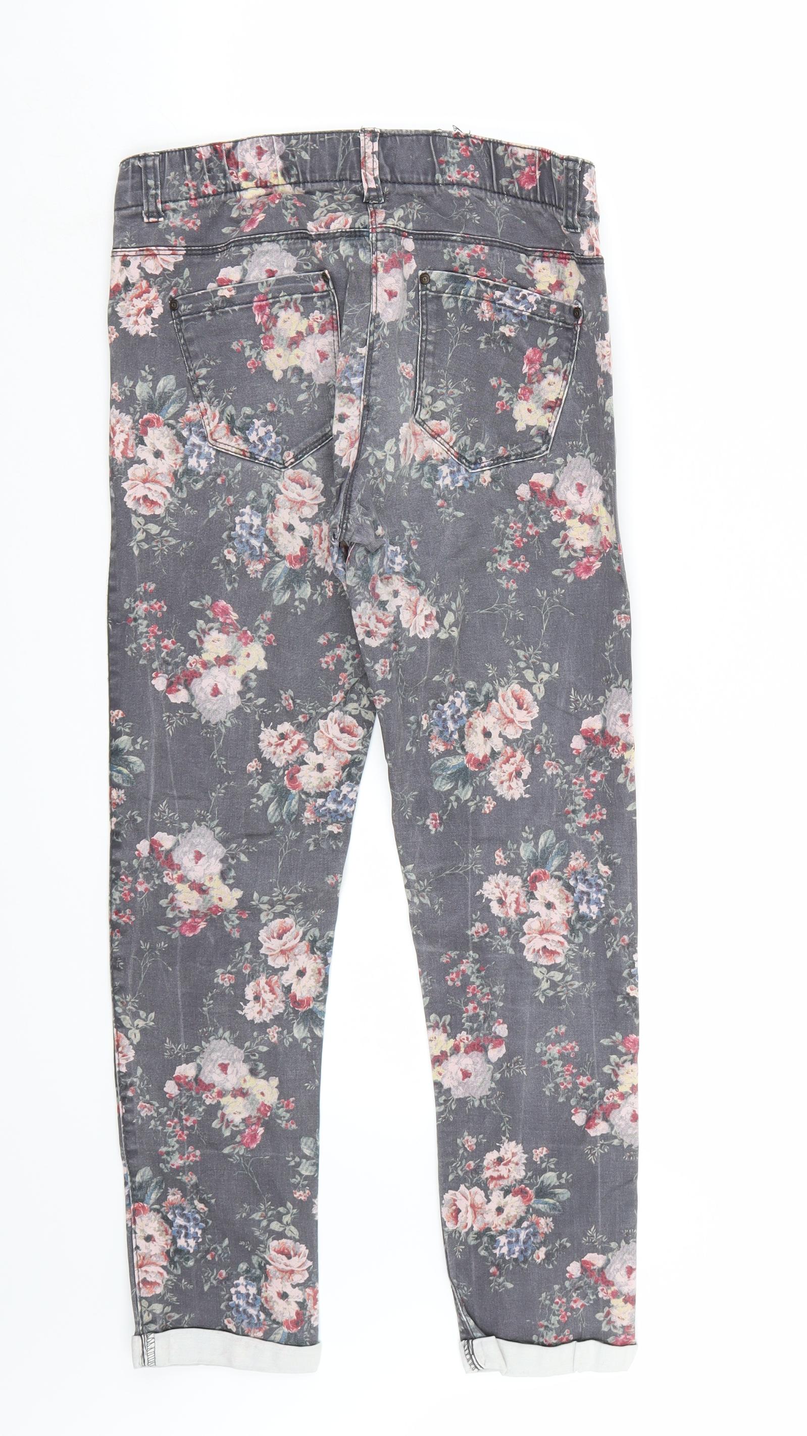 Here & There Womens Grey Floral Skinny Jeans Size 28 L27 in