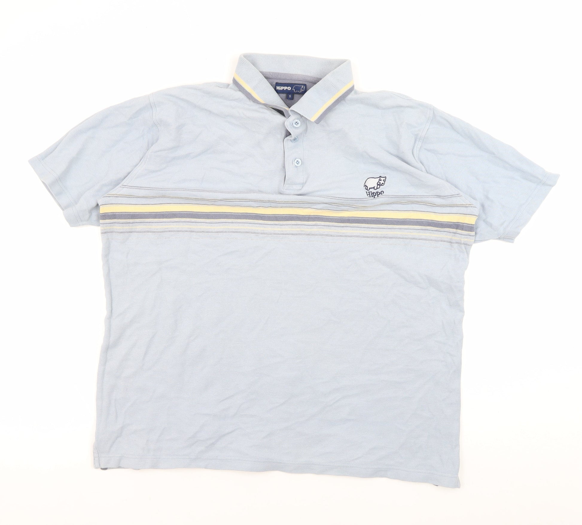 Hippo Men's Blue Striped Polo Shirt, Size S
