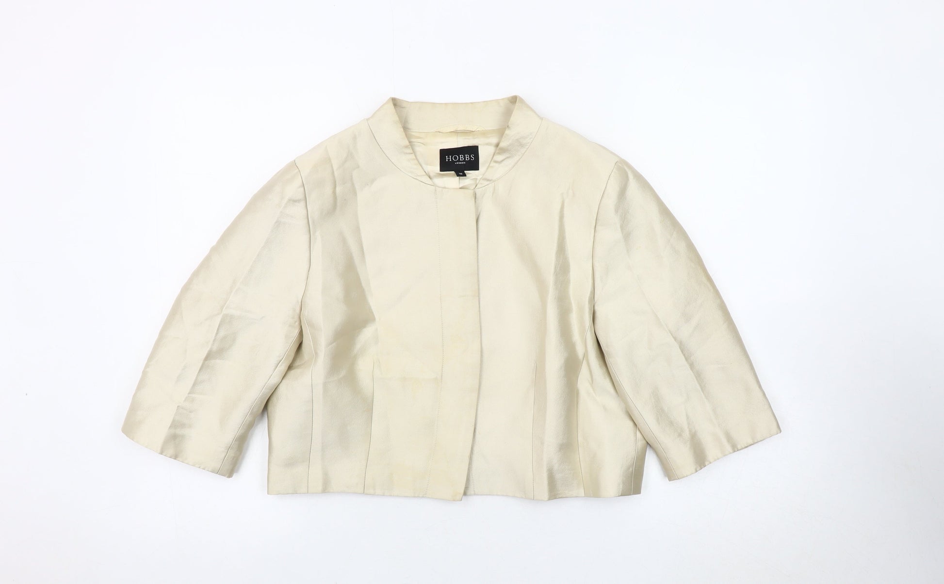 Hobbs Ivory Silk Blazer Women Size 16 Cropped 3/4 Sleeve