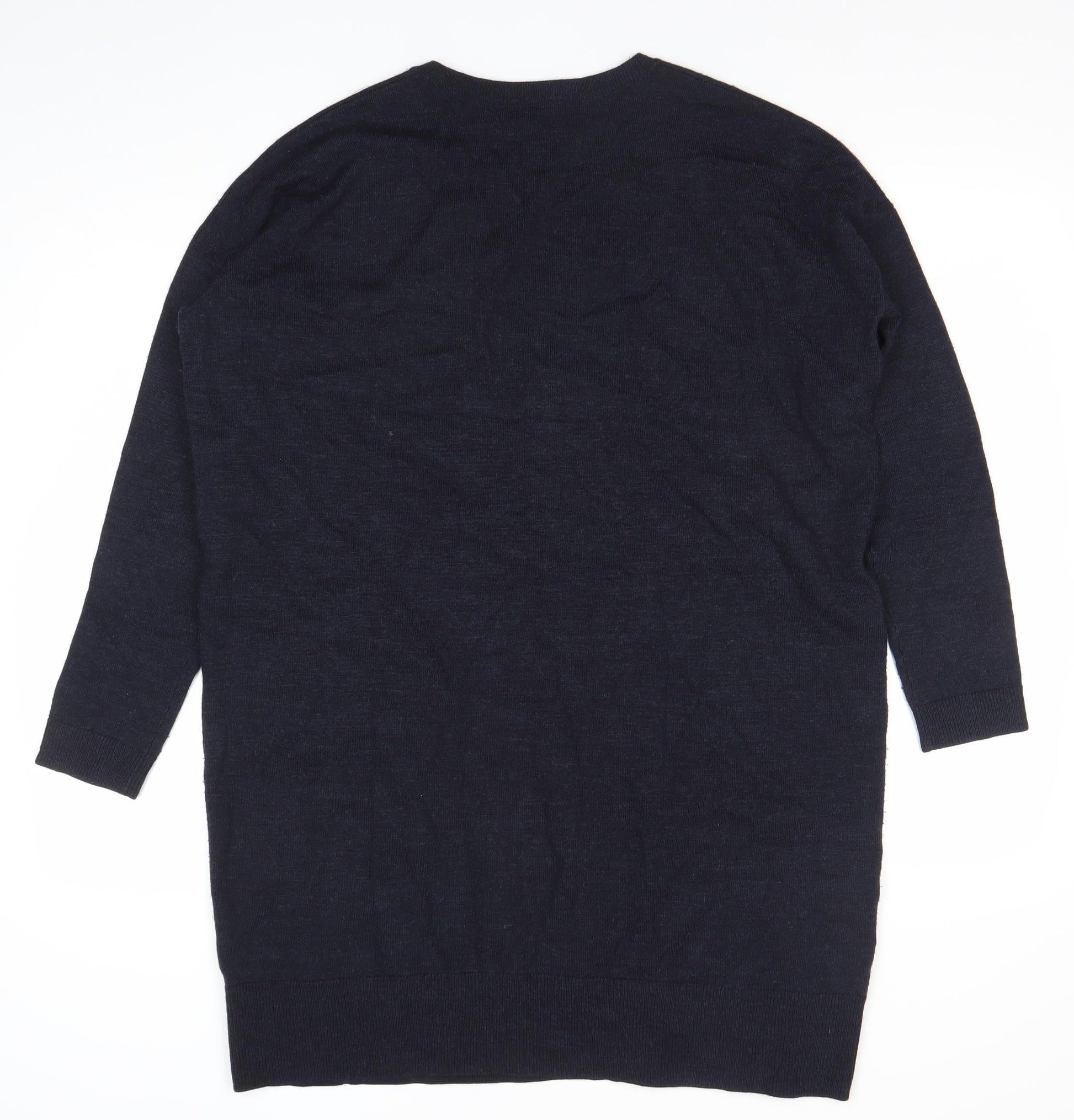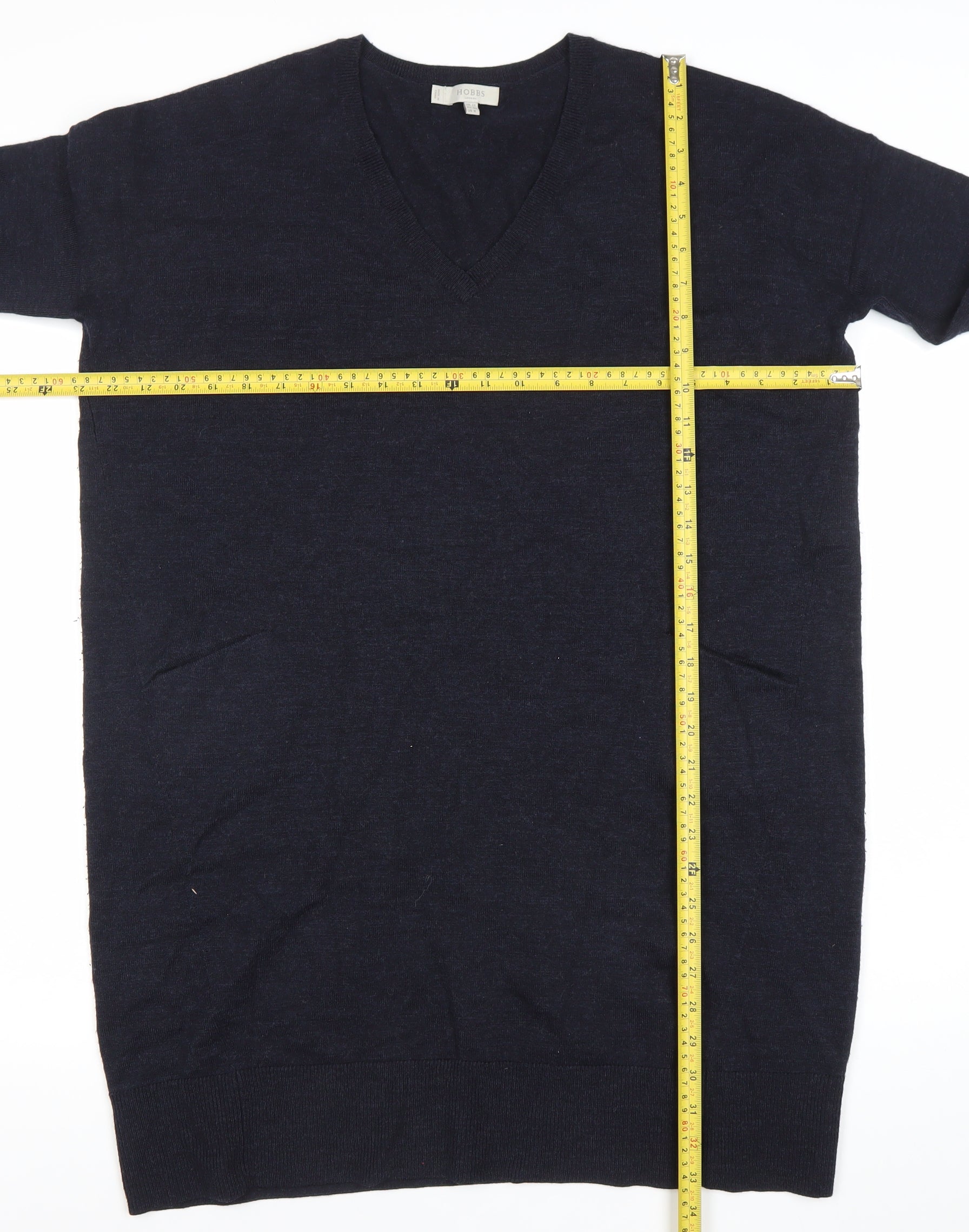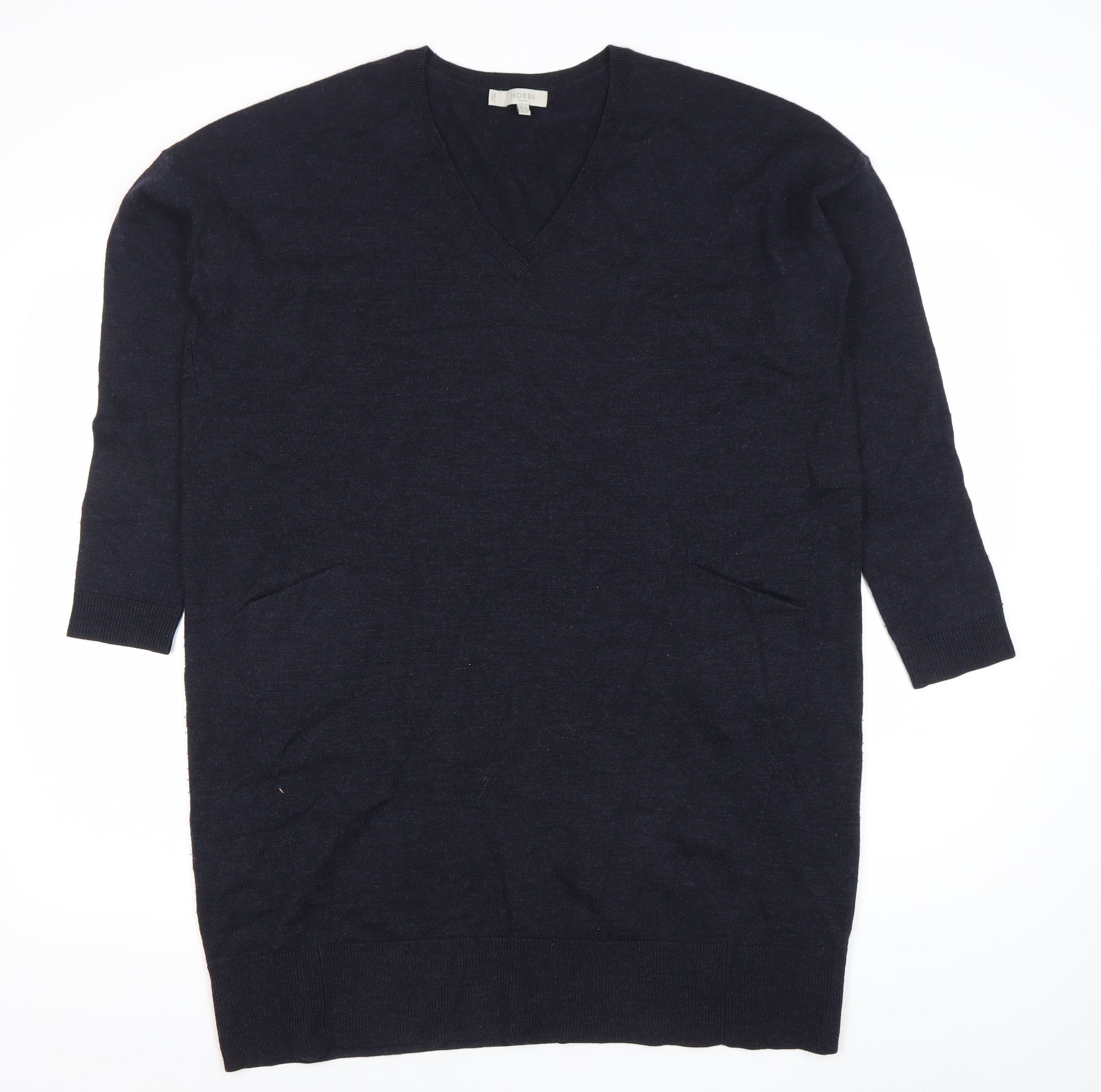 Hobbs Women Black Wool Tunic Jumper Size 12 V-Neck 3/4 Sleeve