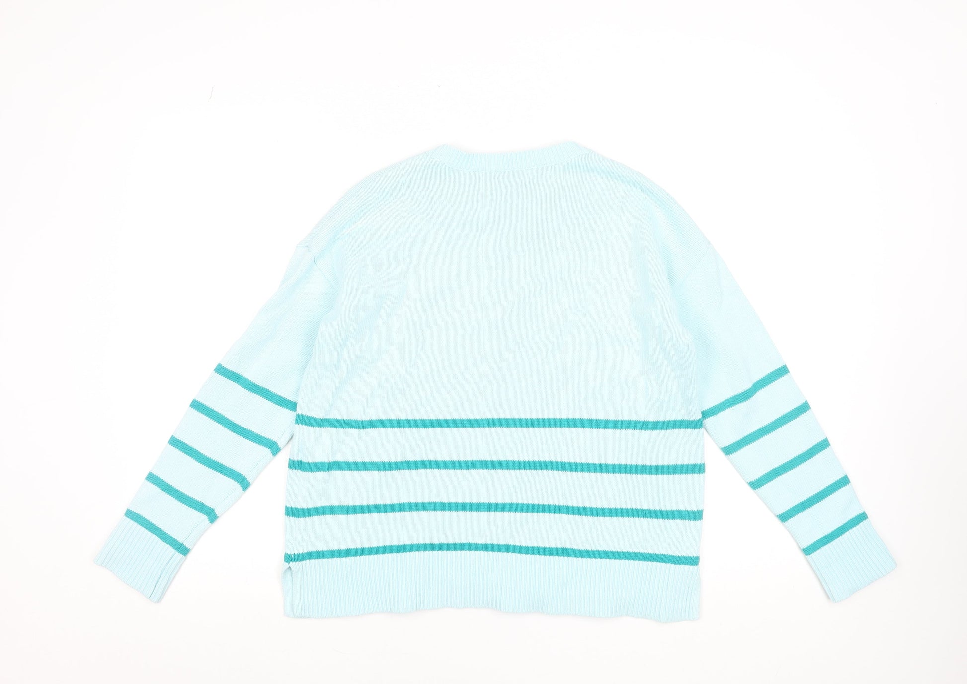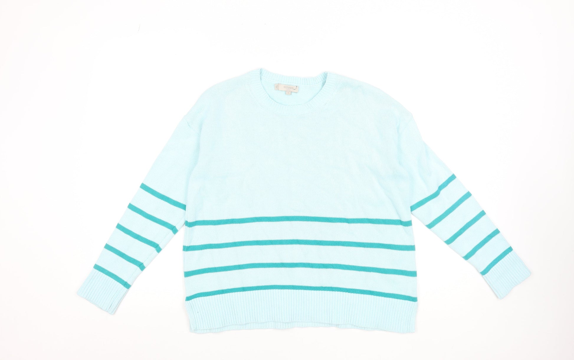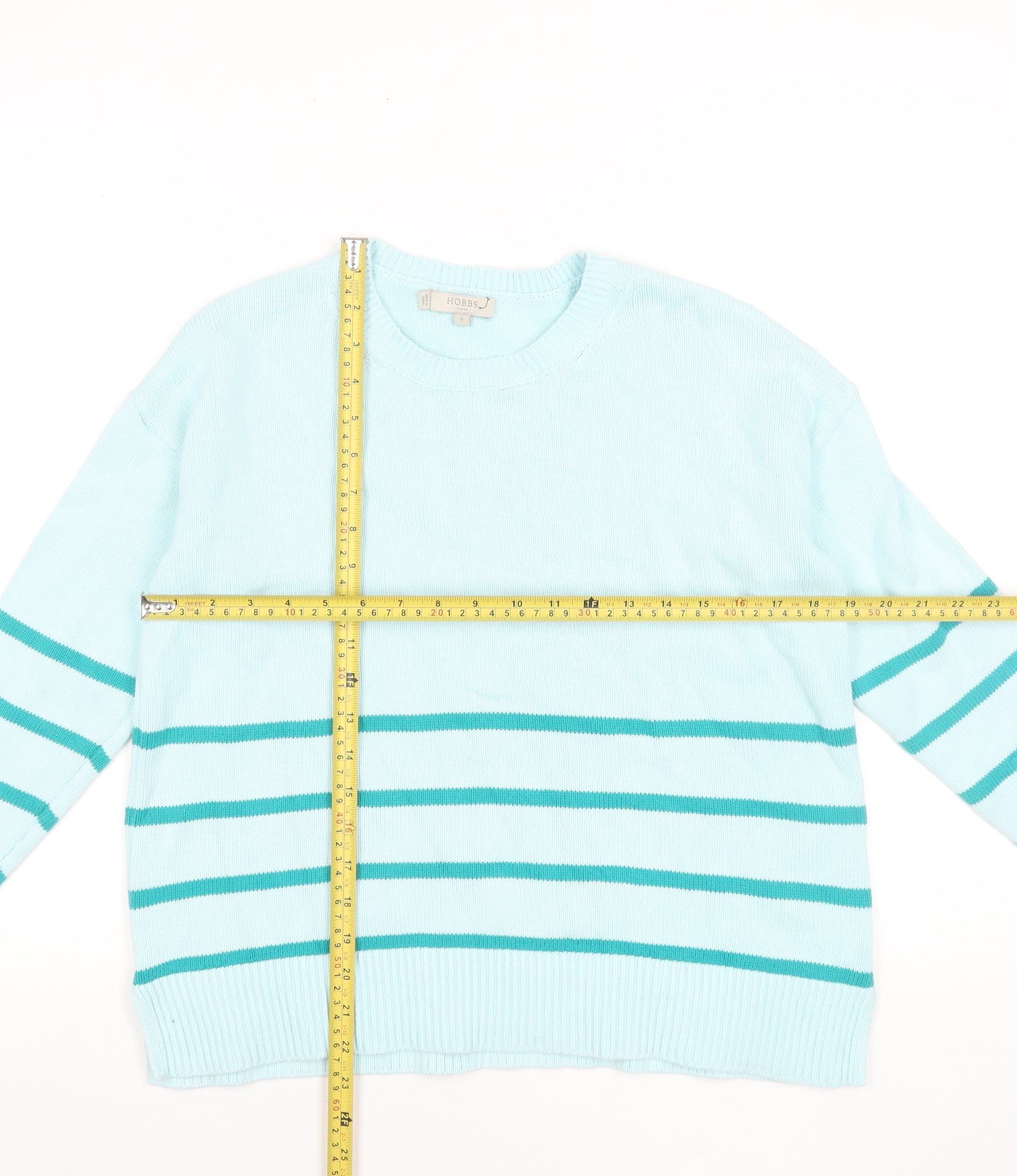Hobbs Women Blue Striped Cotton Crew Neck Jumper Size S