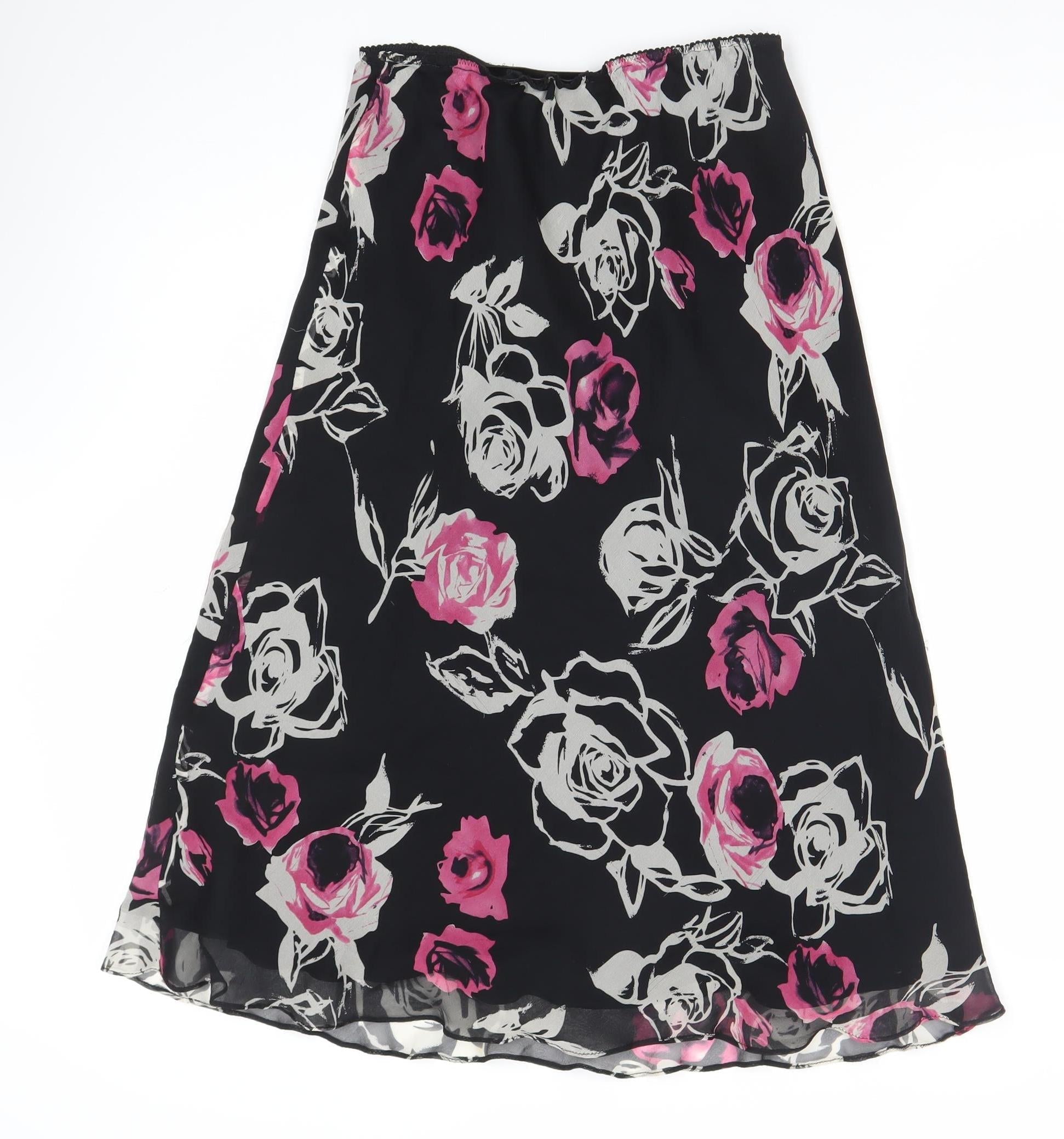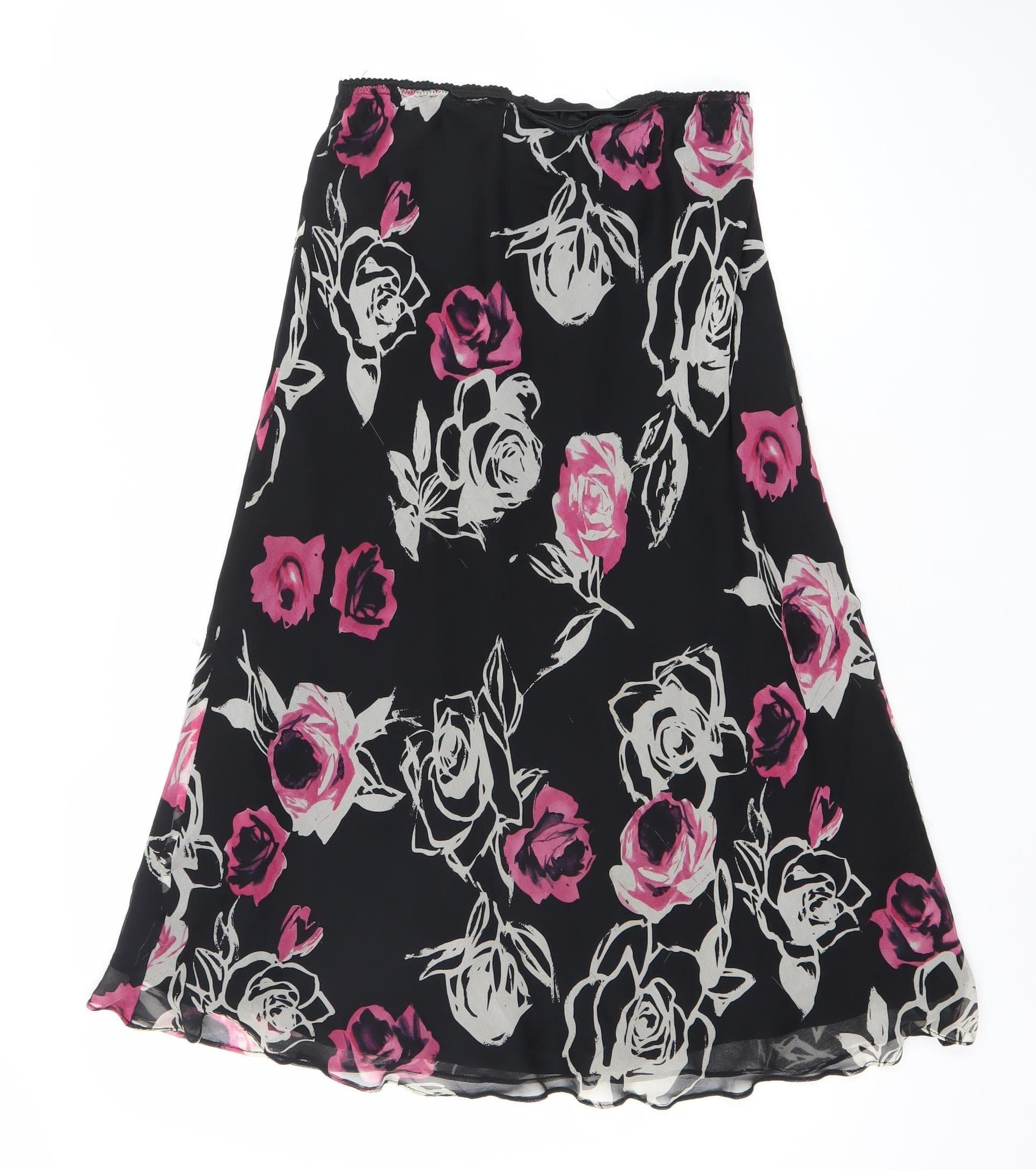 Hobbs Women’s Black Silk Floral A-Line Knee Length Skirt Size 12