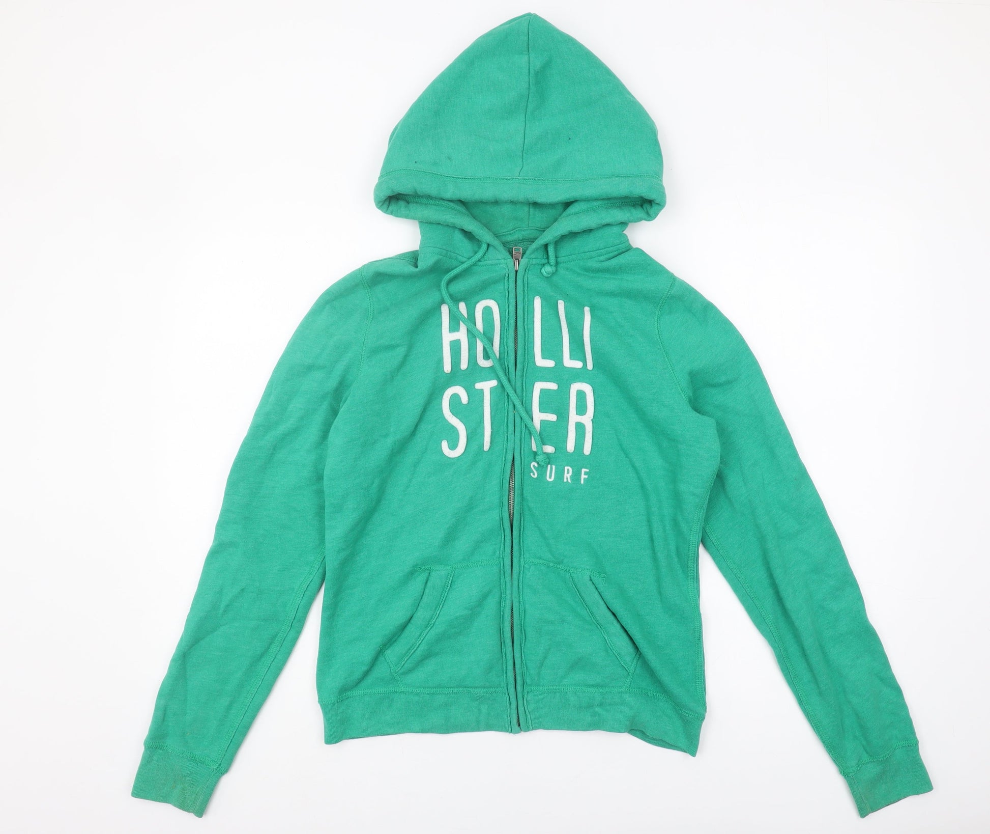 Hollister Green Unisex Full Zip Hoodie L, Casual, Logo