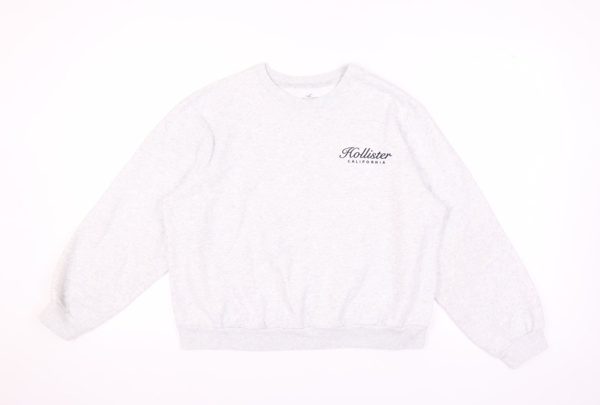 Hollister Grey Unisex Sweatshirt M Logo Pullover