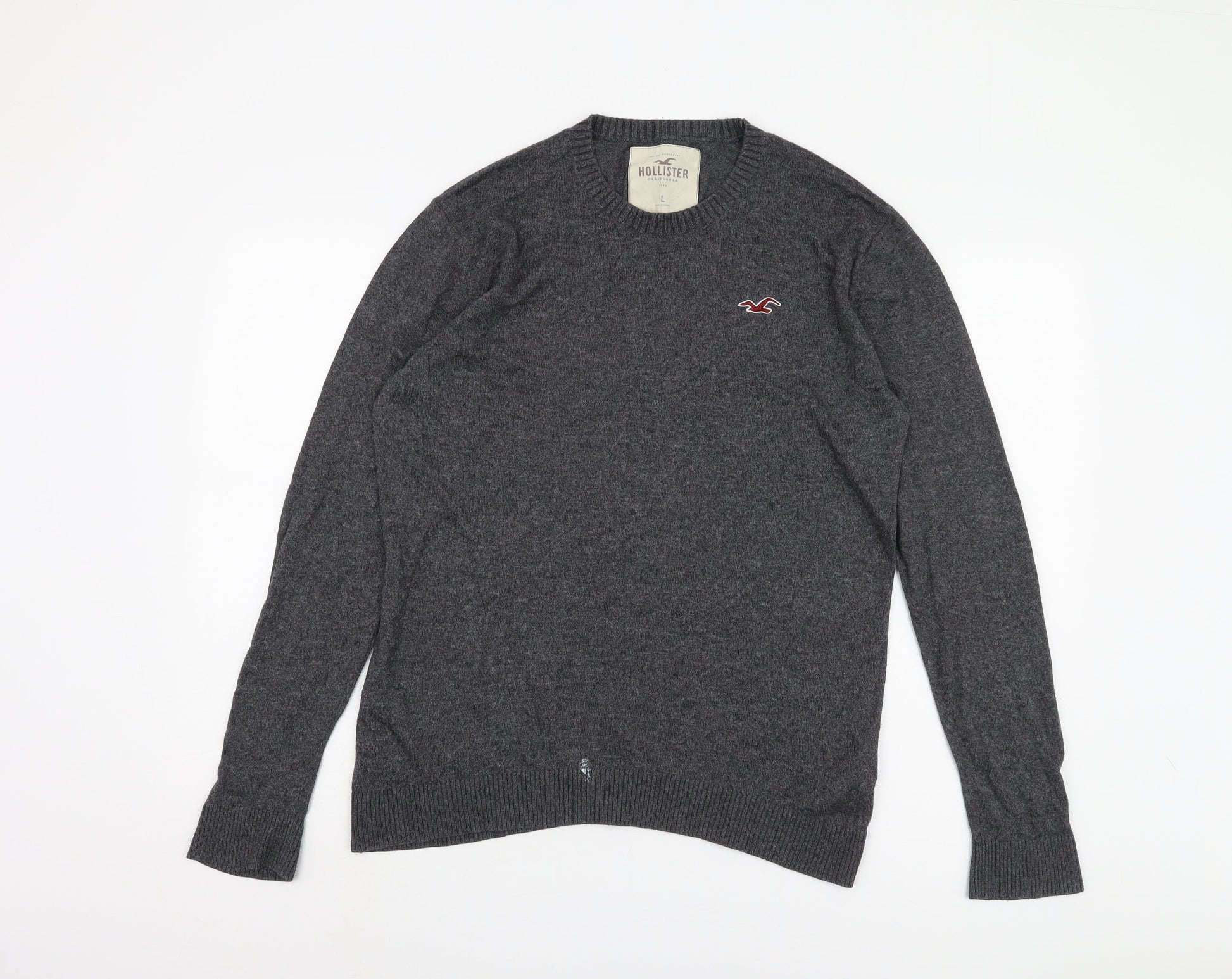 Hollister Men's Grey Crew Neck Pullover Jumper Size L
