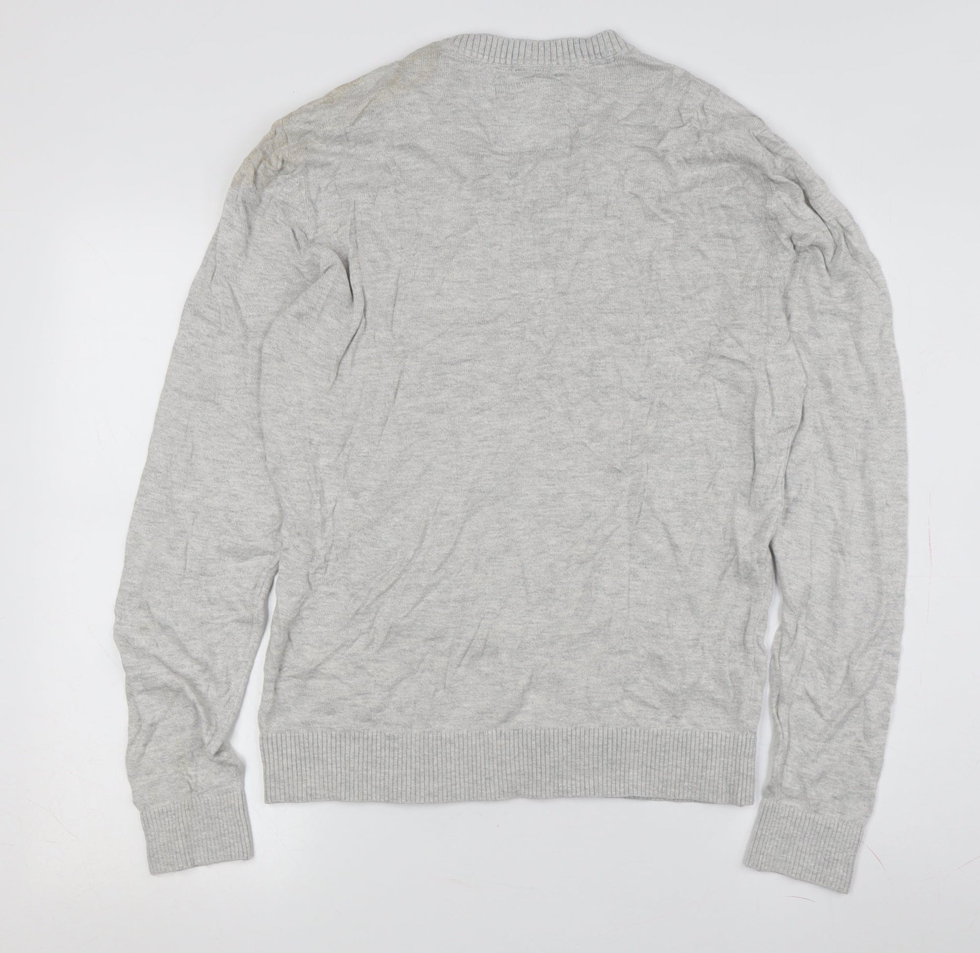 Hollister Men's Grey V-Neck Pullover Jumper M