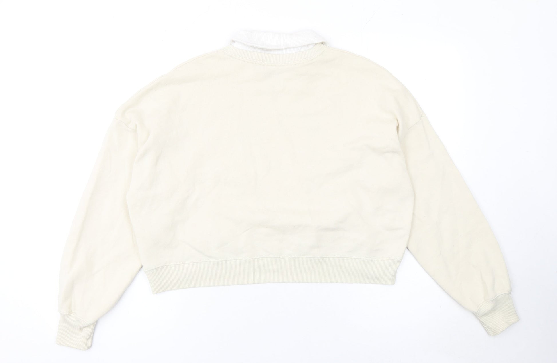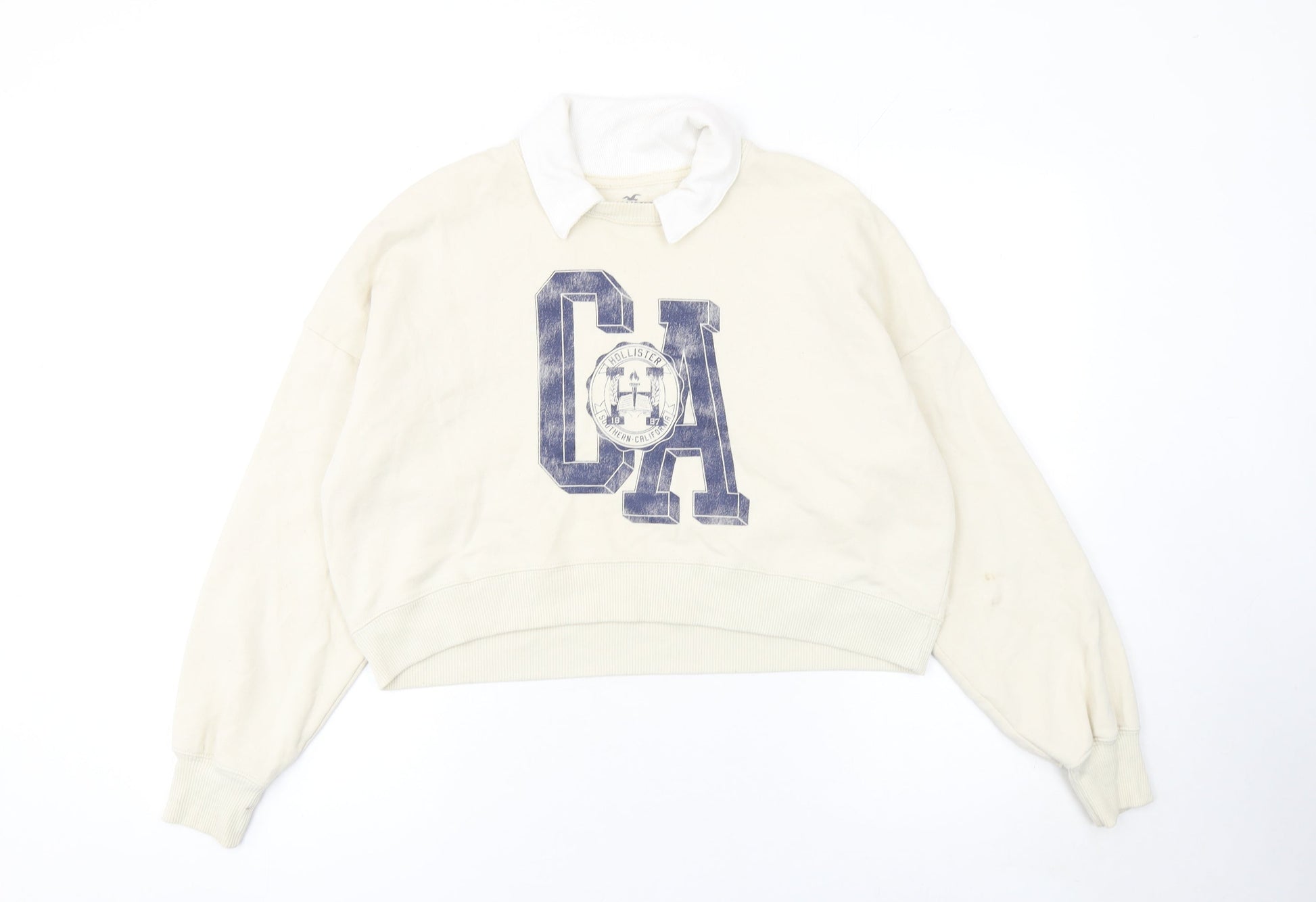 Hollister Women Beige Collared Pullover Sweatshirt S CA Print