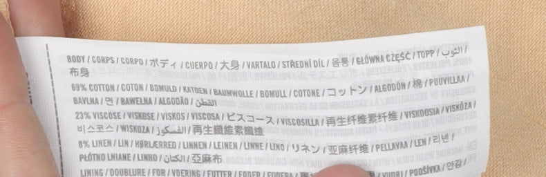 - Material Breakdown: 69% Cotton 23% Viscose 8% Linen