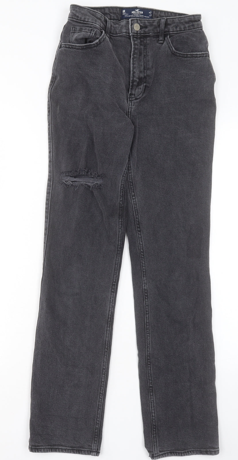 Hollister Womens Black Cotton Straight Jeans Size 24 in L31 in Regular Button