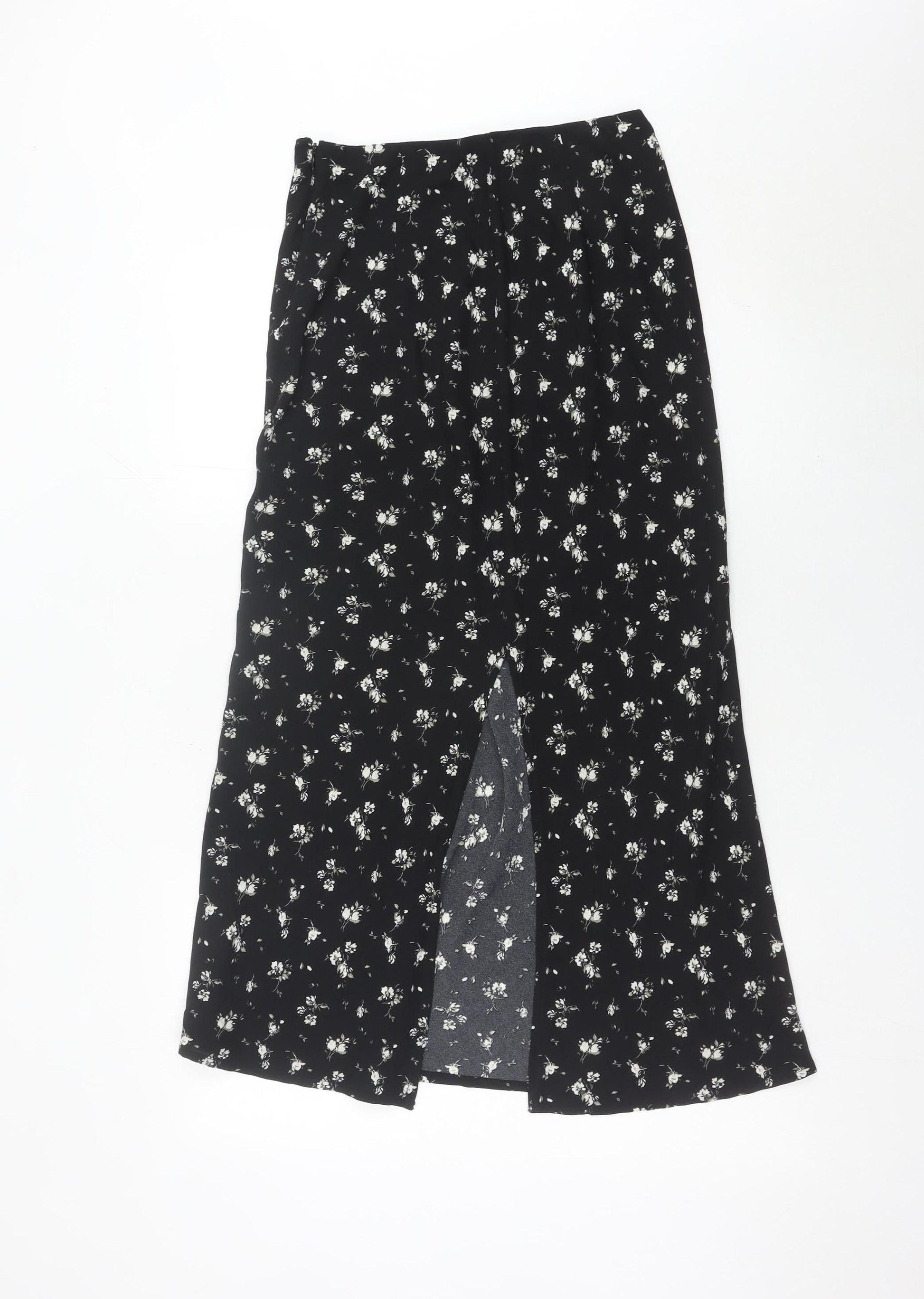 Hollister Womens Black Floral A-Line Midi Skirt XS High Rise