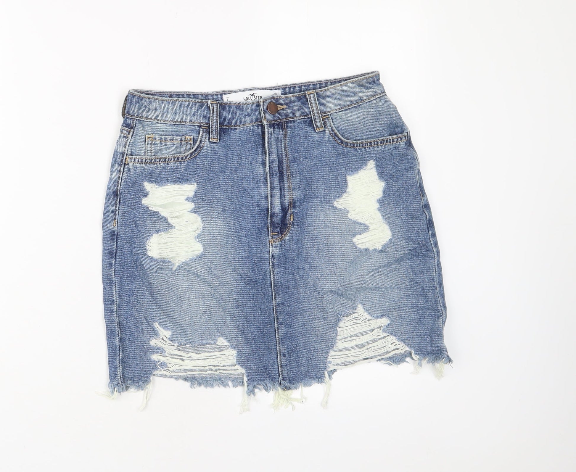 Hollister Womens Blue Cotton A-Line Skirt Size 28 in Zip - Distressed