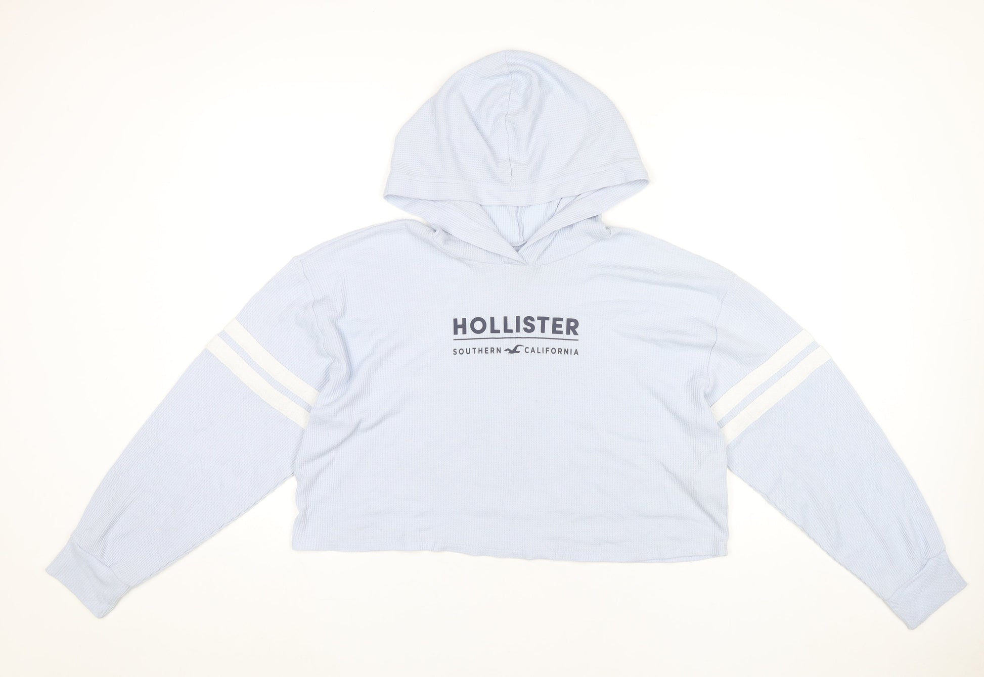 Hollister Womens Blue Cropped Hoodie Medium Pullover Logo Print