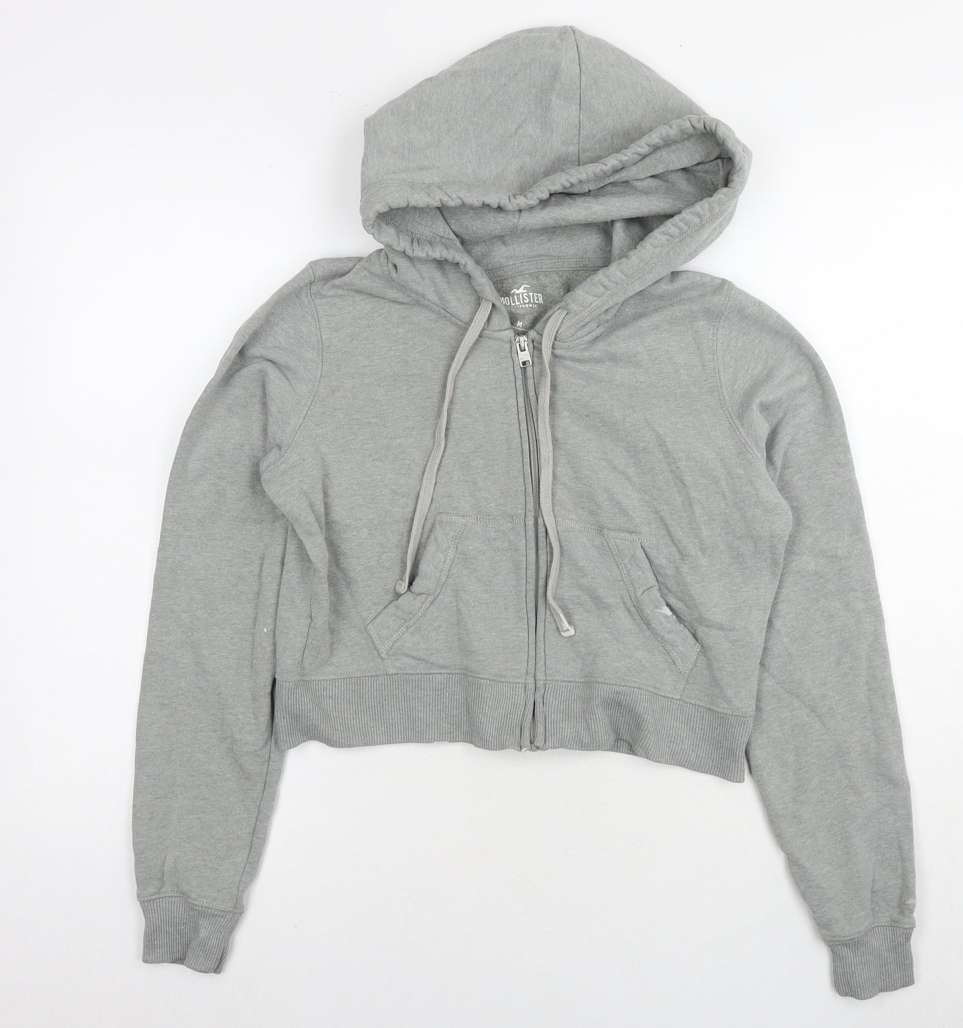 Hollister Womens Grey Cotton Full Zip Hoodie Size M Pullover