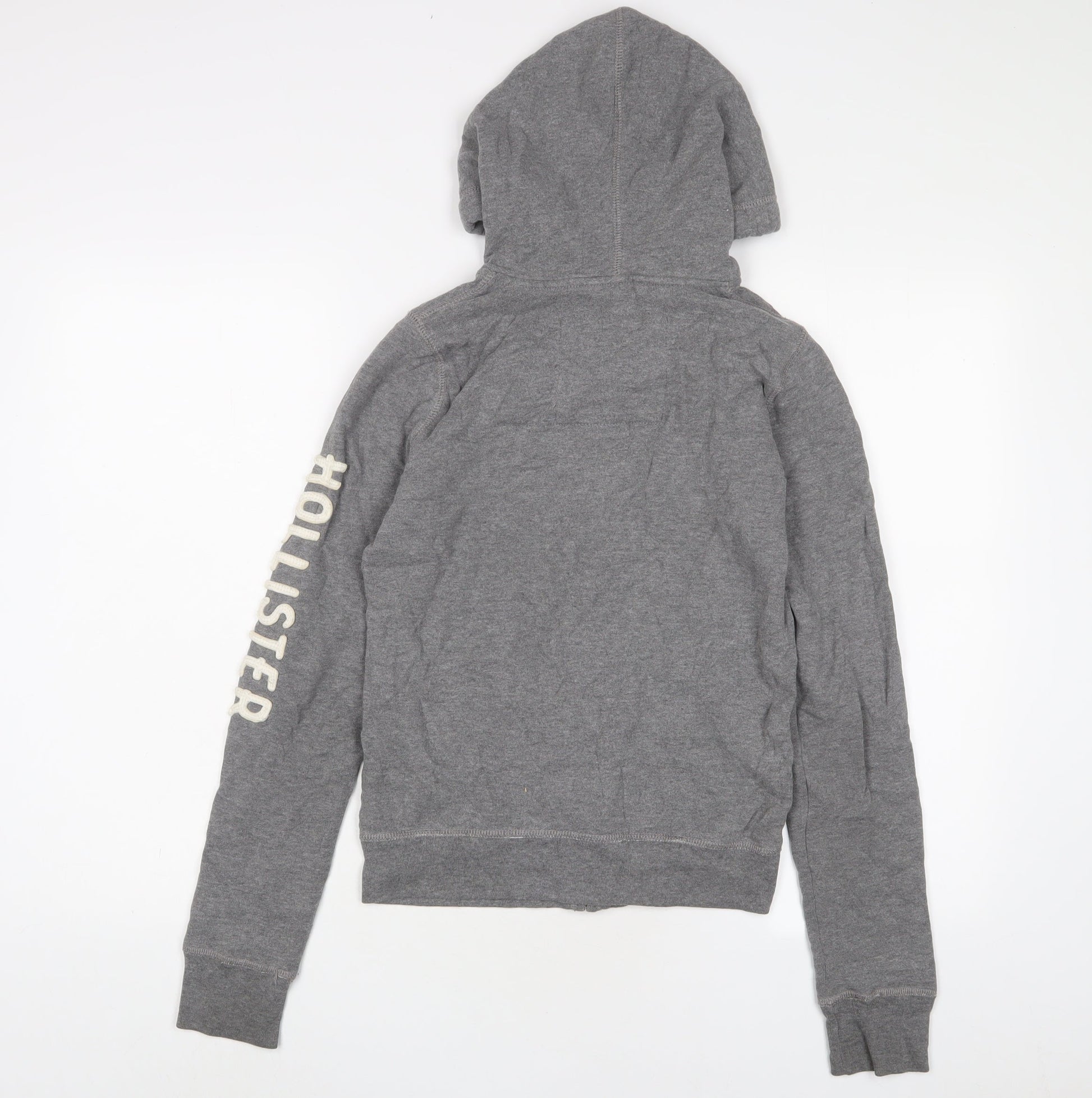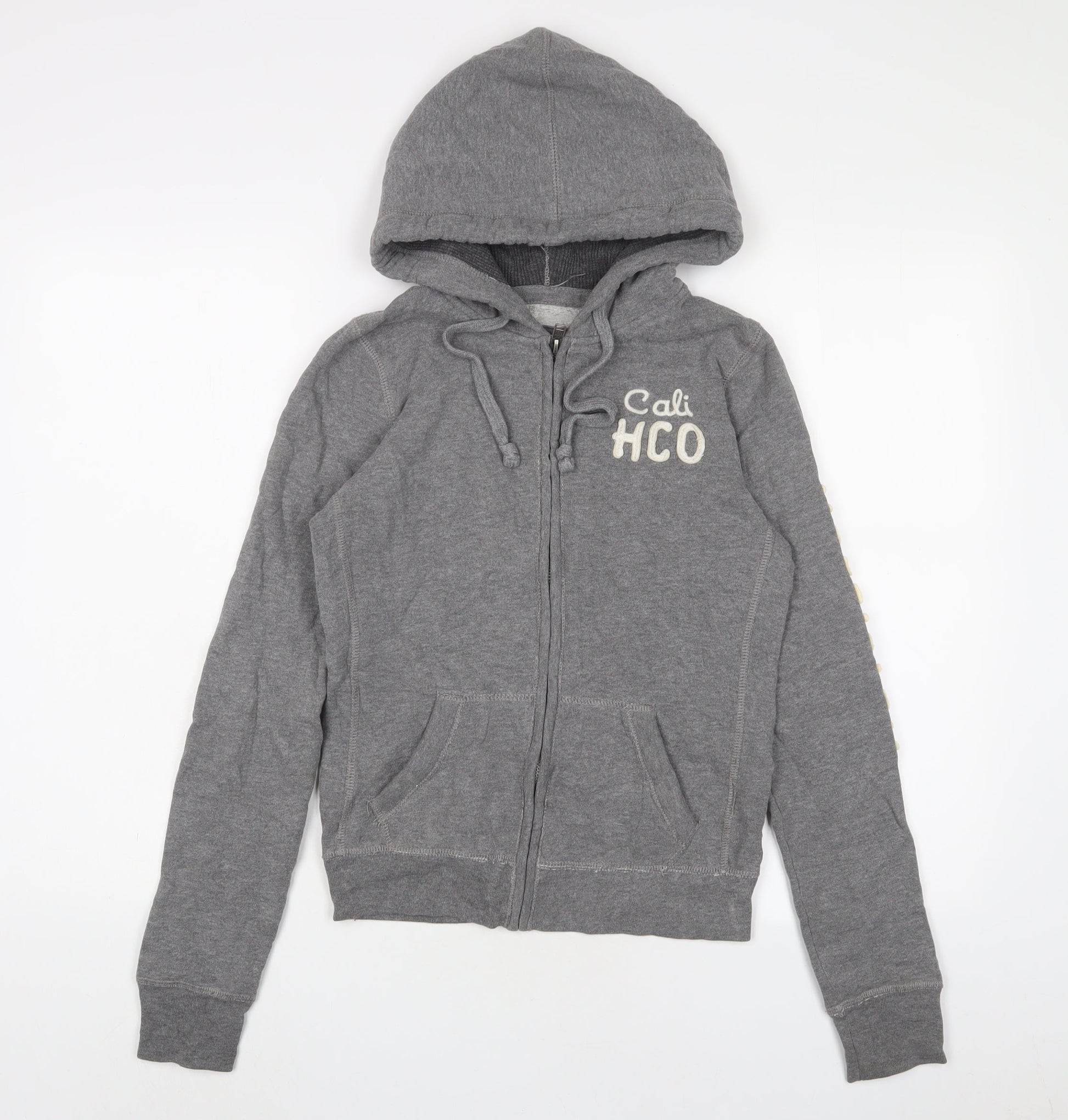 Hollister Womens Grey Cotton Full Zip Hoodie Size S Zip - Logo, Embroidered