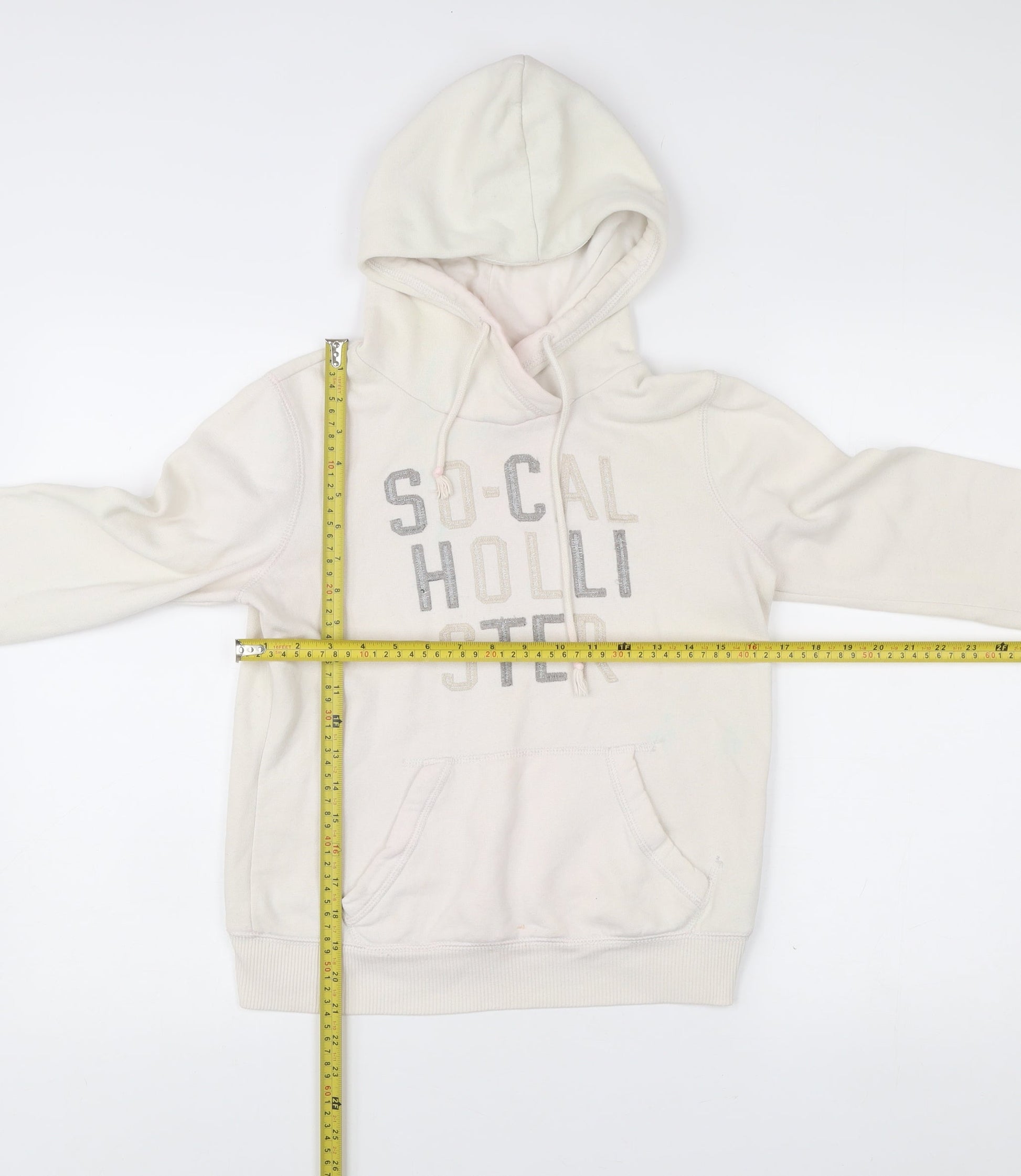 Hollister Womens Ivory Pullover Hoodie XS Logo Raglan Casual
