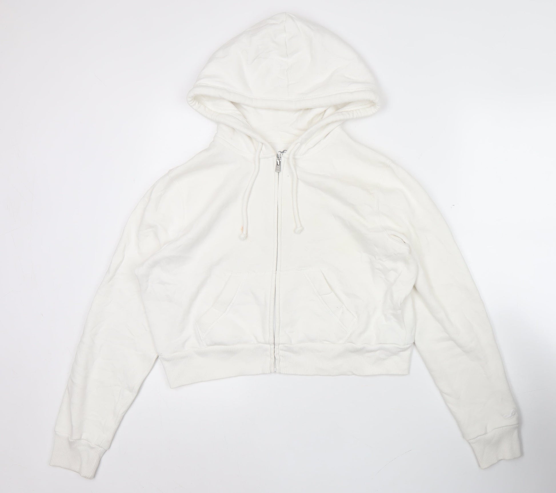 Hollister Womens White Full Zip Hoodie Size M Cotton Blend Casual