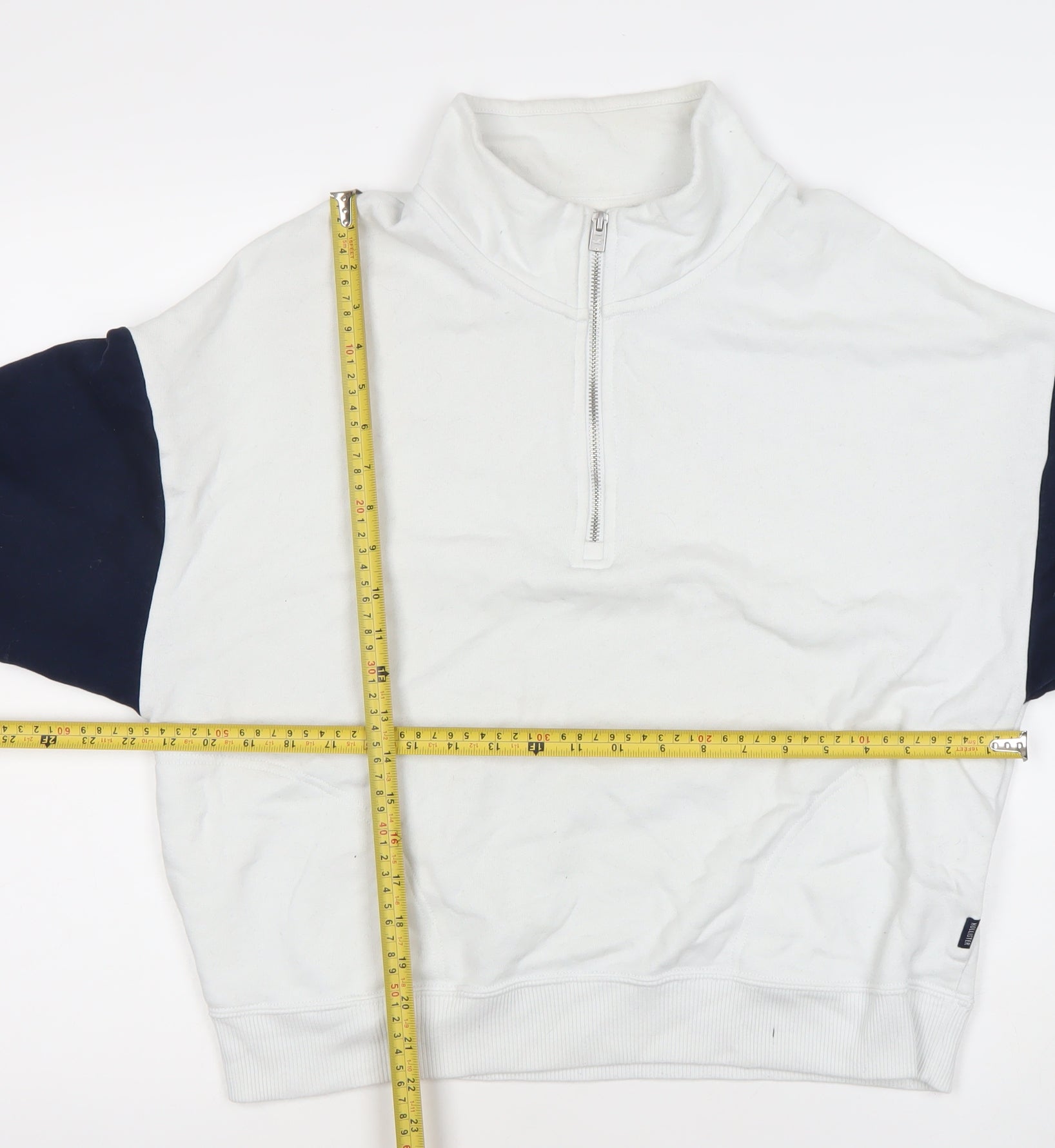 Hollister Womens White Navy Sweatshirt M 1/2 Zip Cotton Blend