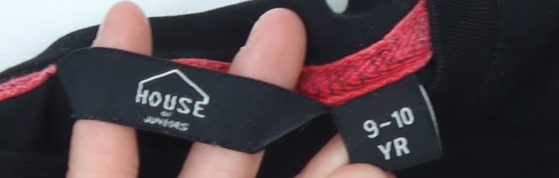 House of Juniors Girls Black Long Sleeve Logo Cotton T-Shirt 9-10 Years