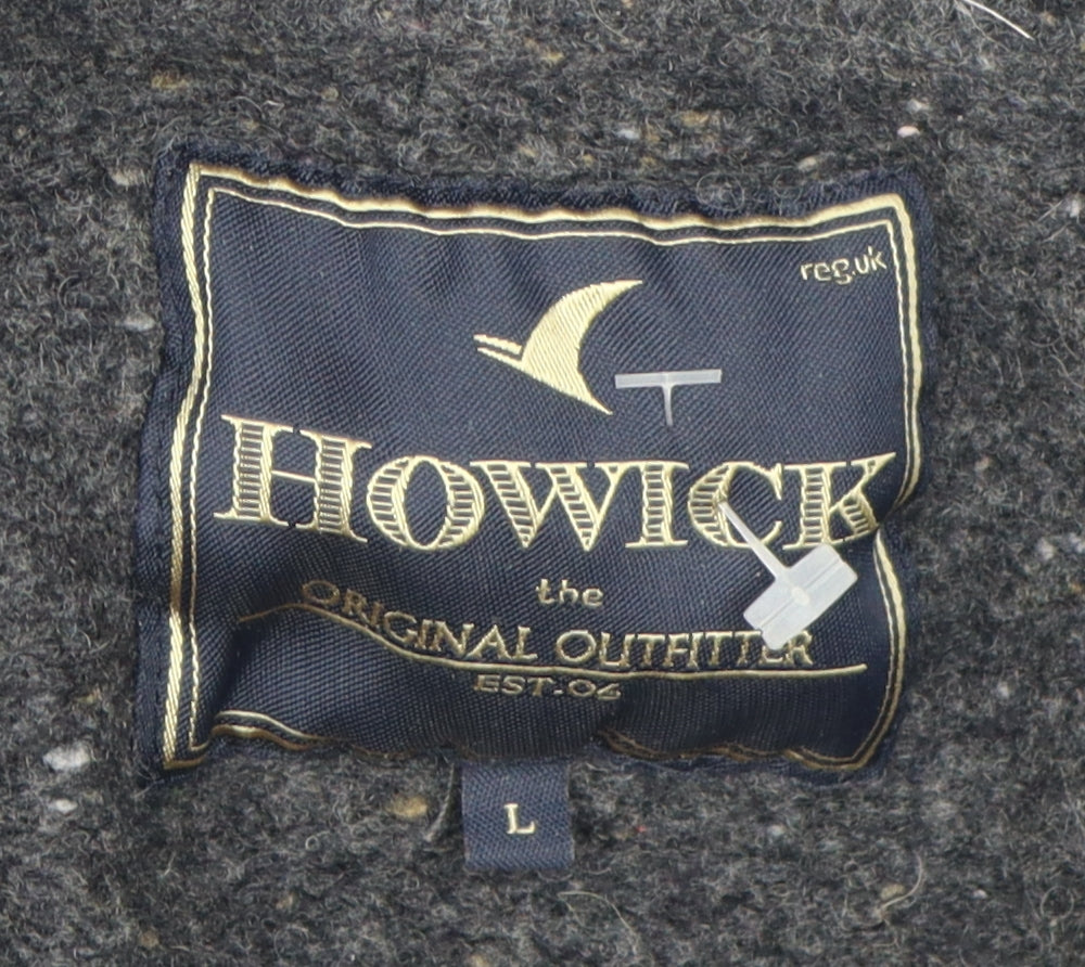 Howick Men's Grey Wool Henley Jumper L High Neck