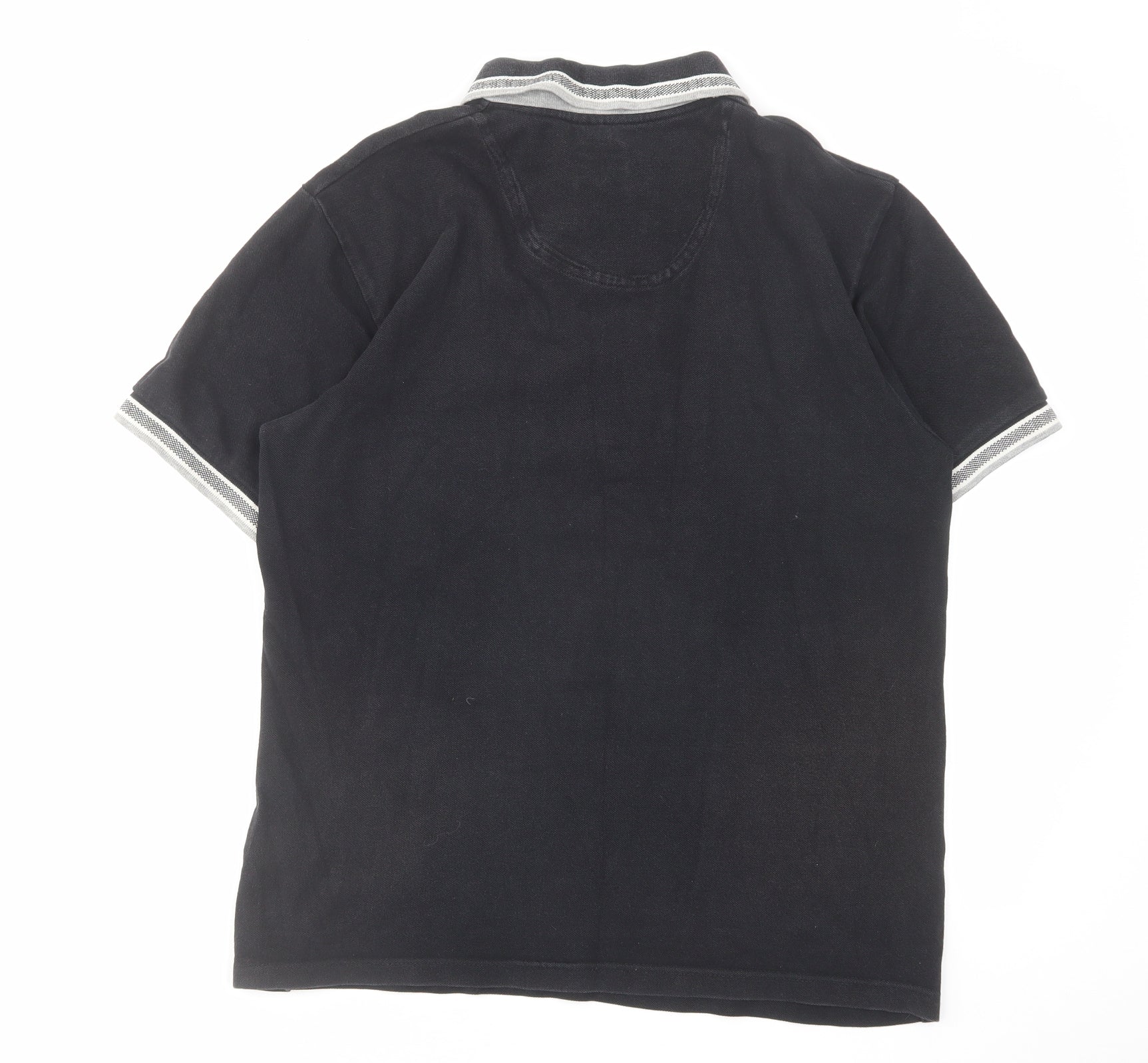 HUGO BOSS Mens Black Cotton Polo Size L Collared Button