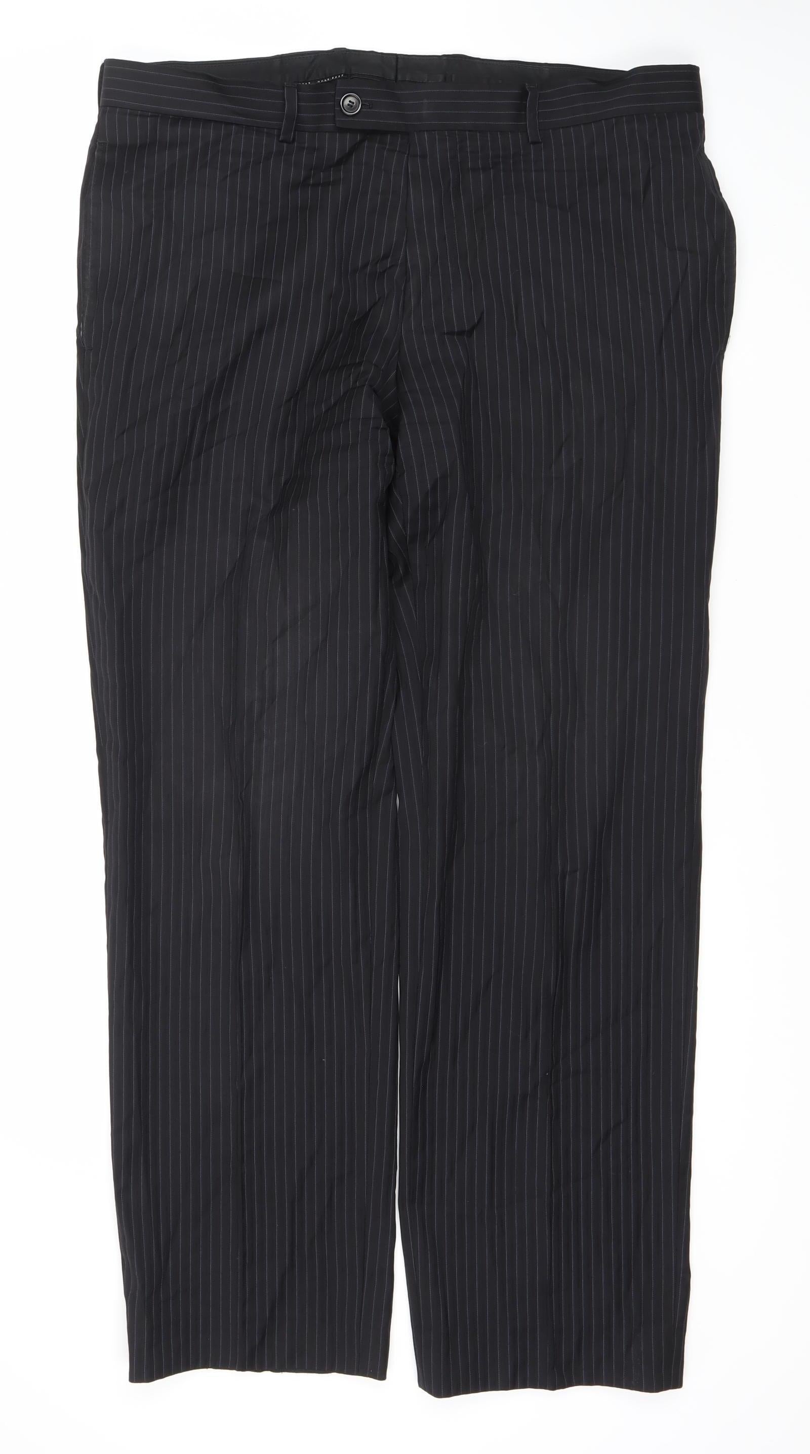 Hugo Boss Men's Black Striped Classic Trousers, Size 54