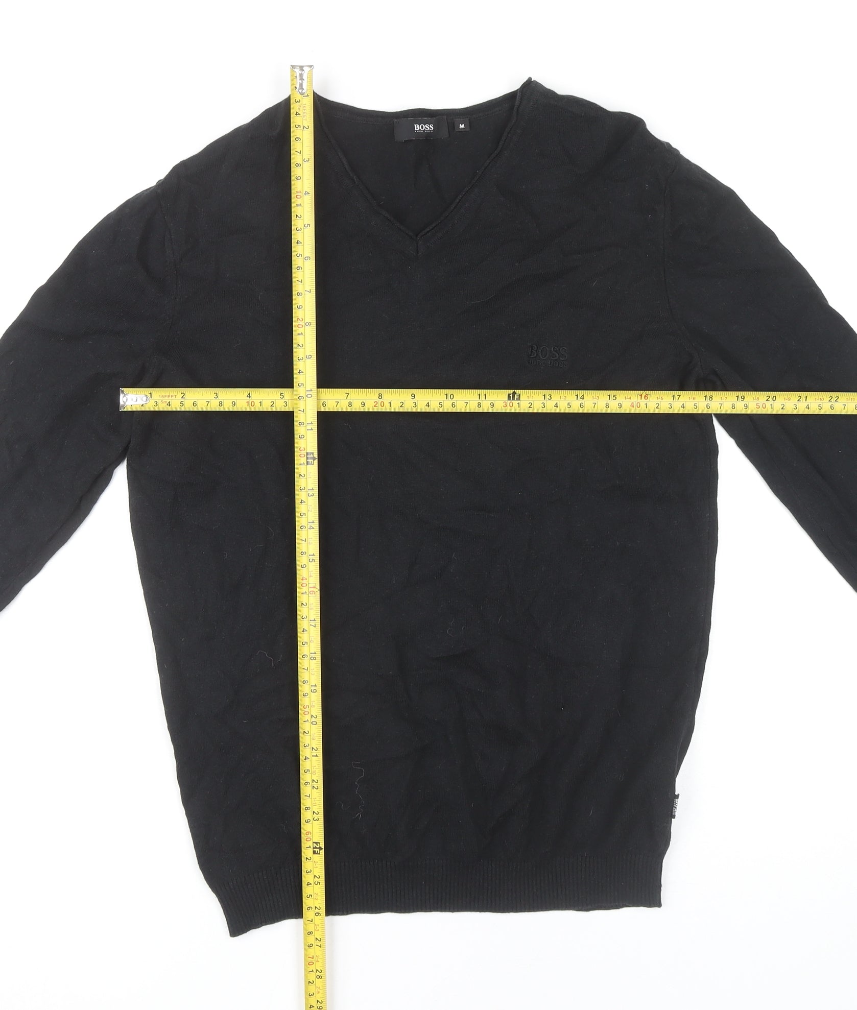 Hugo Boss Men's Black V-Neck Knit Jumper M Cotton Wool Business Casual