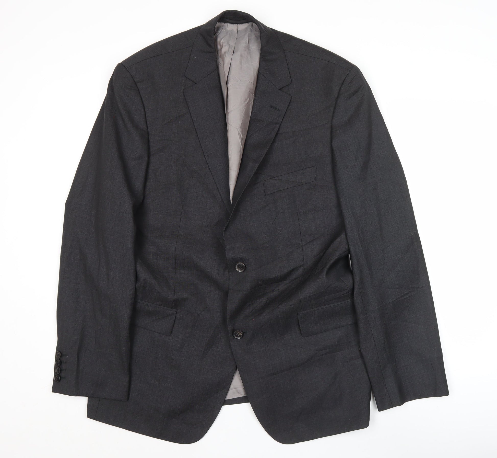 Hugo Boss Men's Grey Classic Fit Virgin Wool Two-Button Blazer 44R