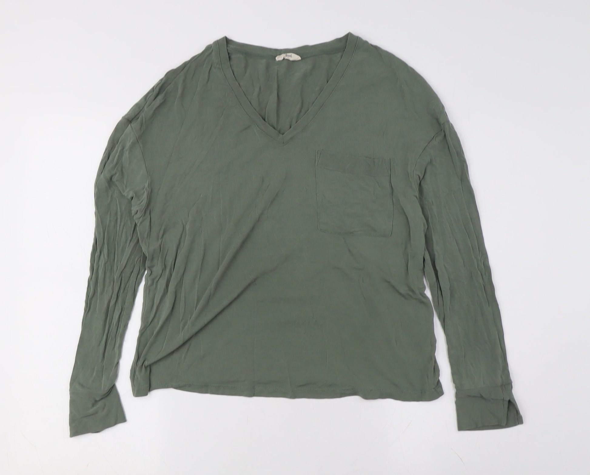 Hush Women’s Green Long Sleeve V-Neck T-Shirt, XS