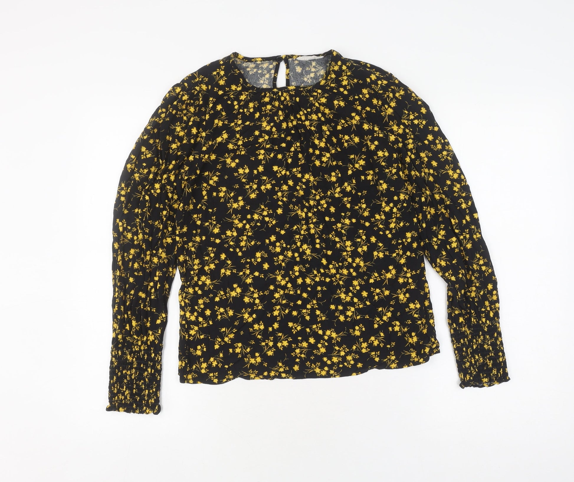 Hush Women's Black Floral Blouse, Size 10, Long Sleeve