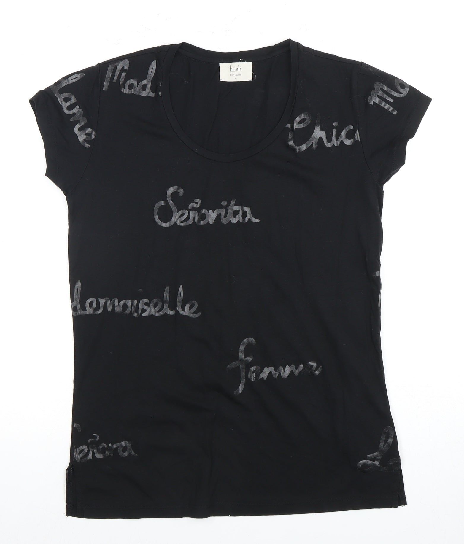 Hush Women's Black T-Shirt XS Round Neck Casual