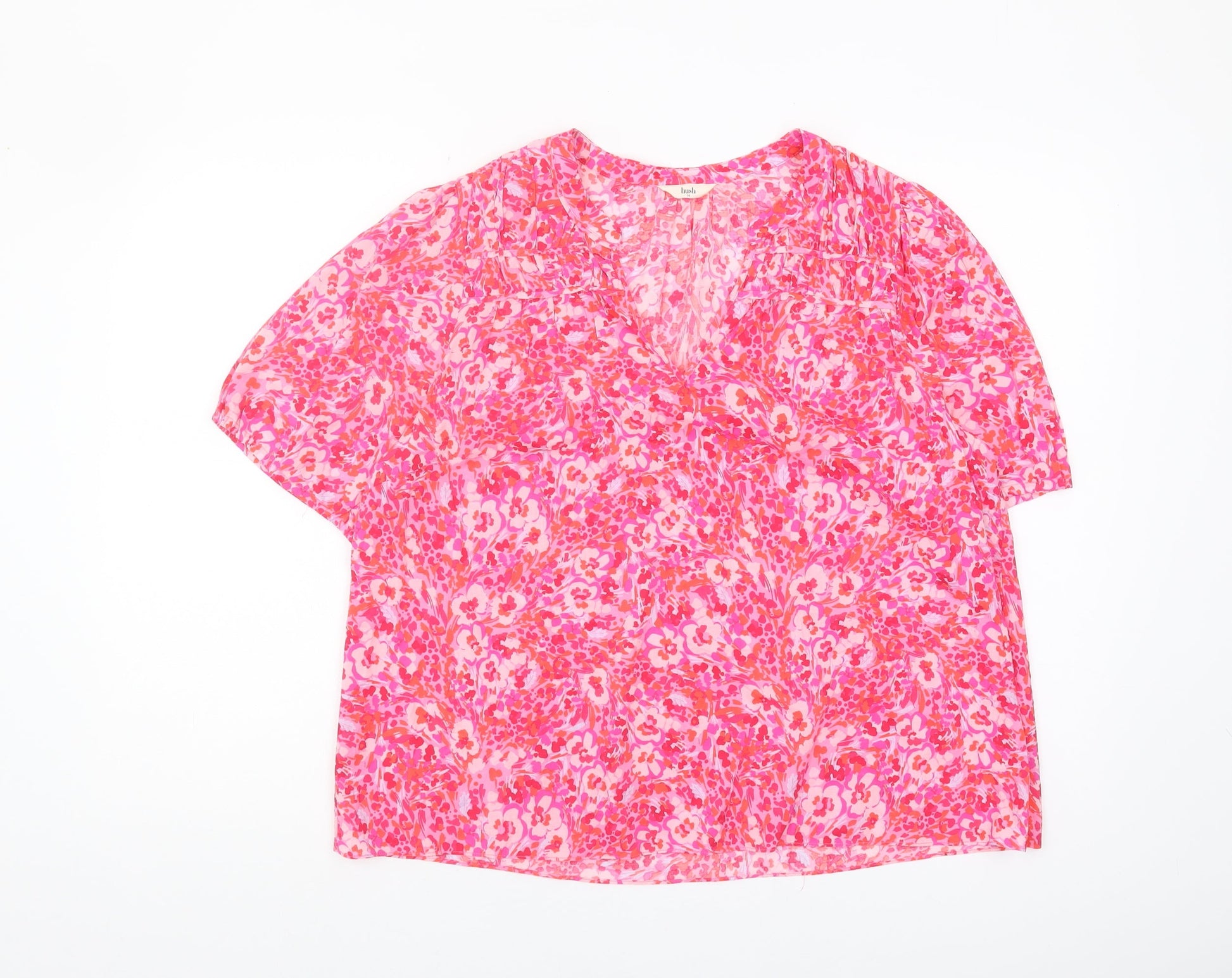 Hush Women's Pink Floral Blouse Size 16 V-Neck