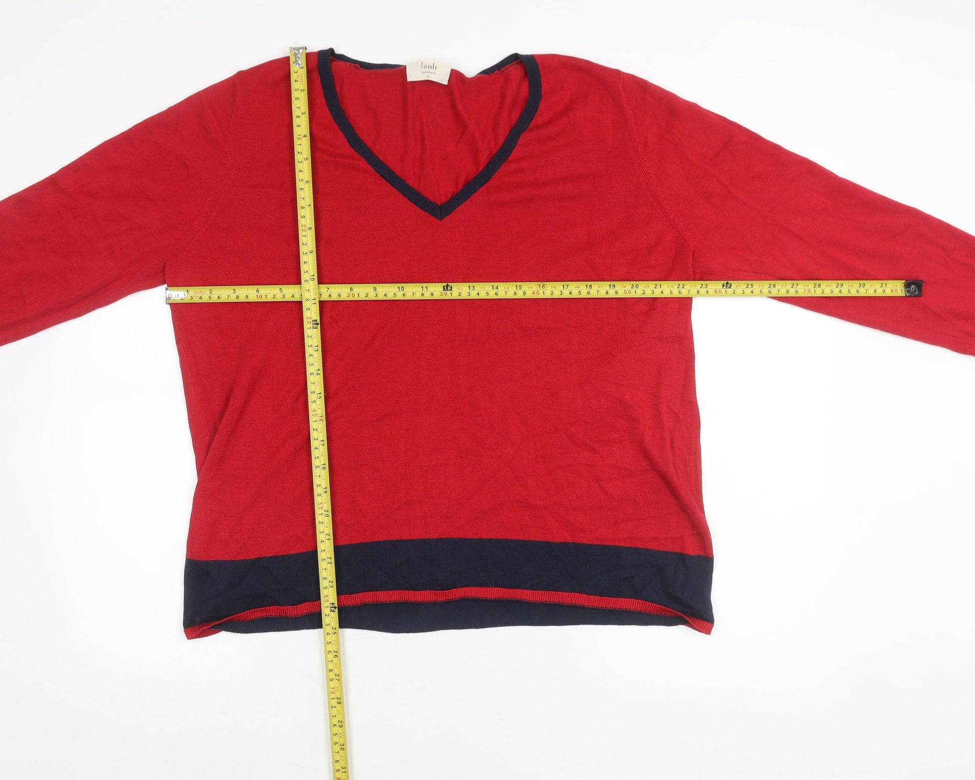 Hush Women's Red V-Neck Knit Jumper XL Cotton Blend