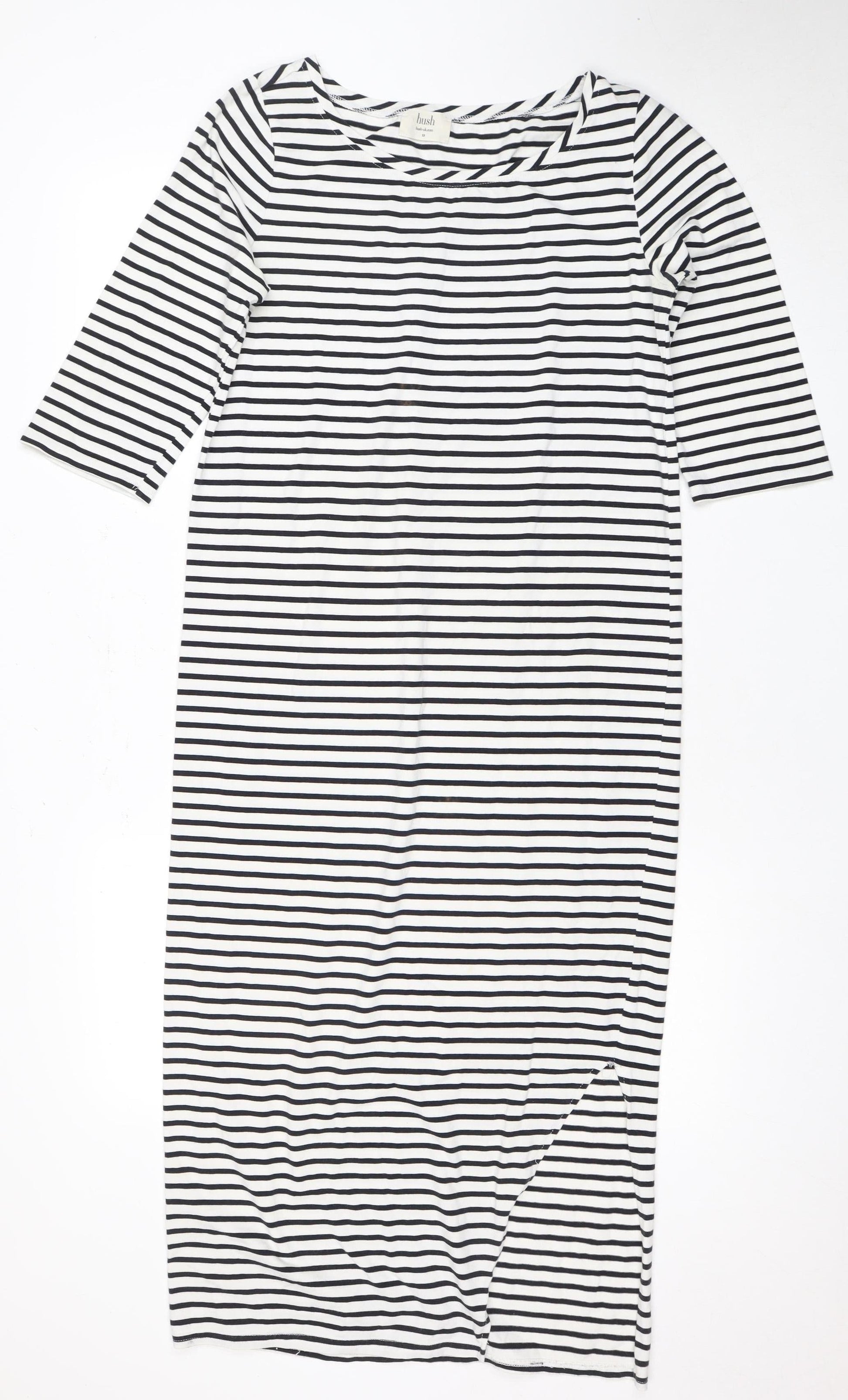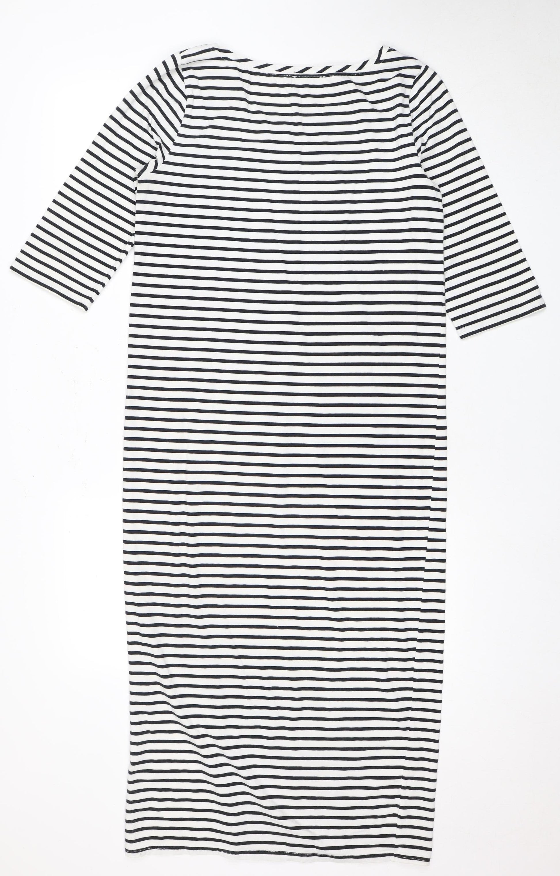 Hush Women's XS White Striped Dress, 3/4 Sleeve