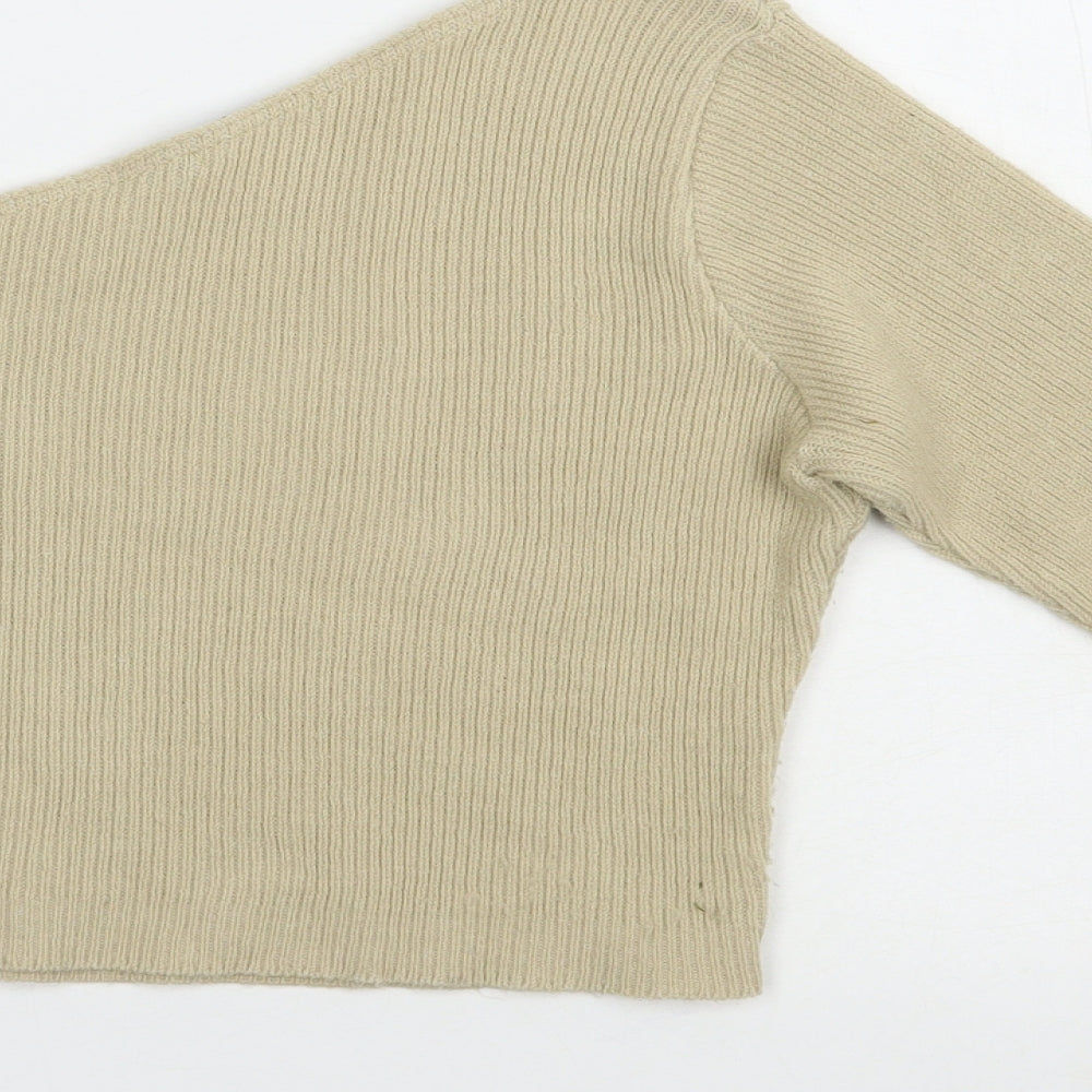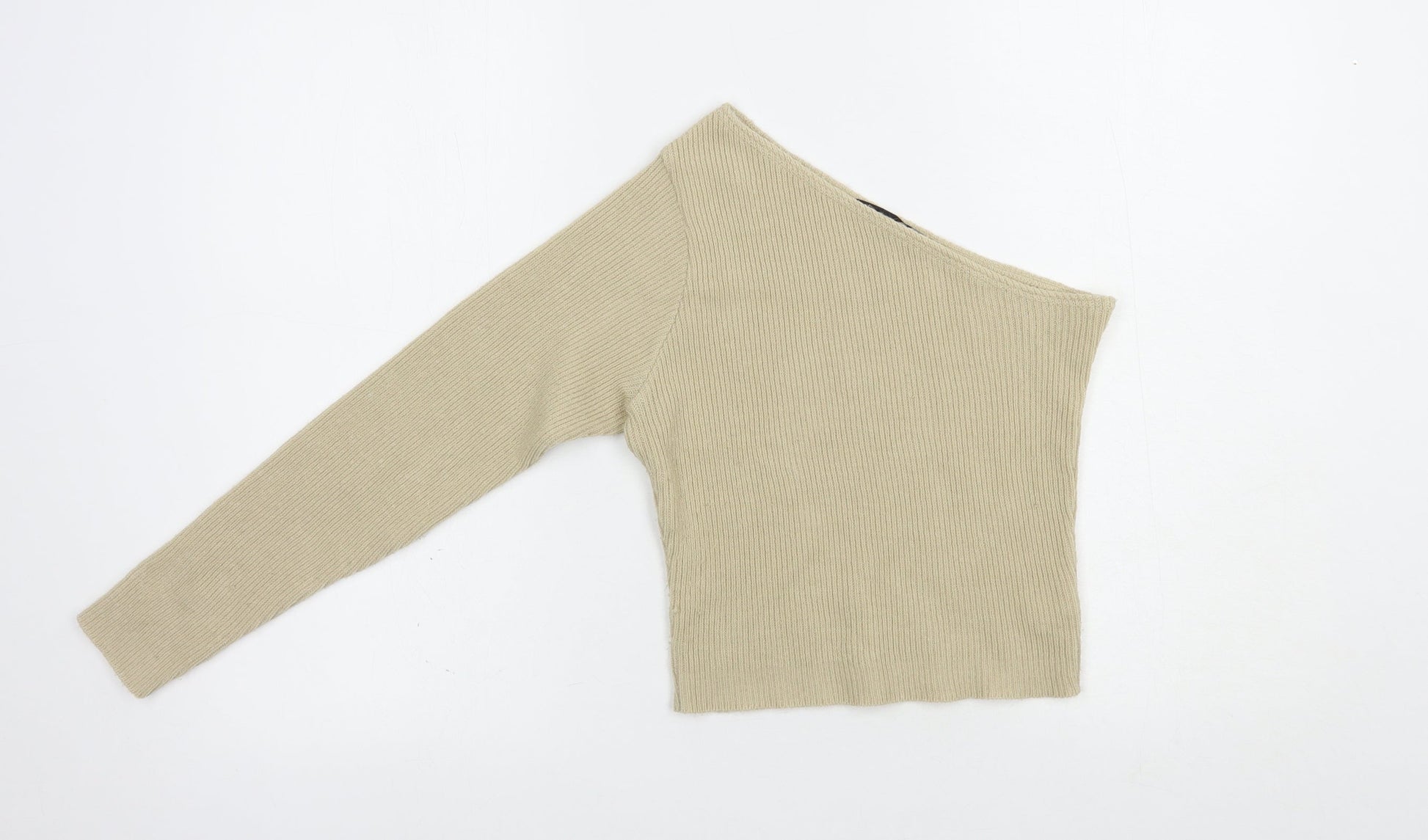 I SAW IT FIRST Womens Beige Acrylic Basic Blouse Size 8 One Shoulder